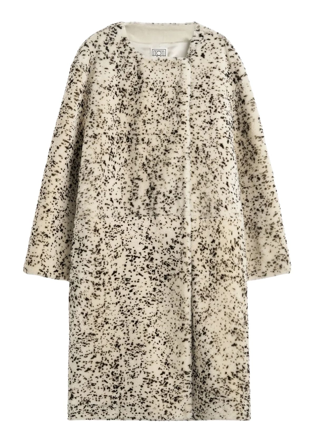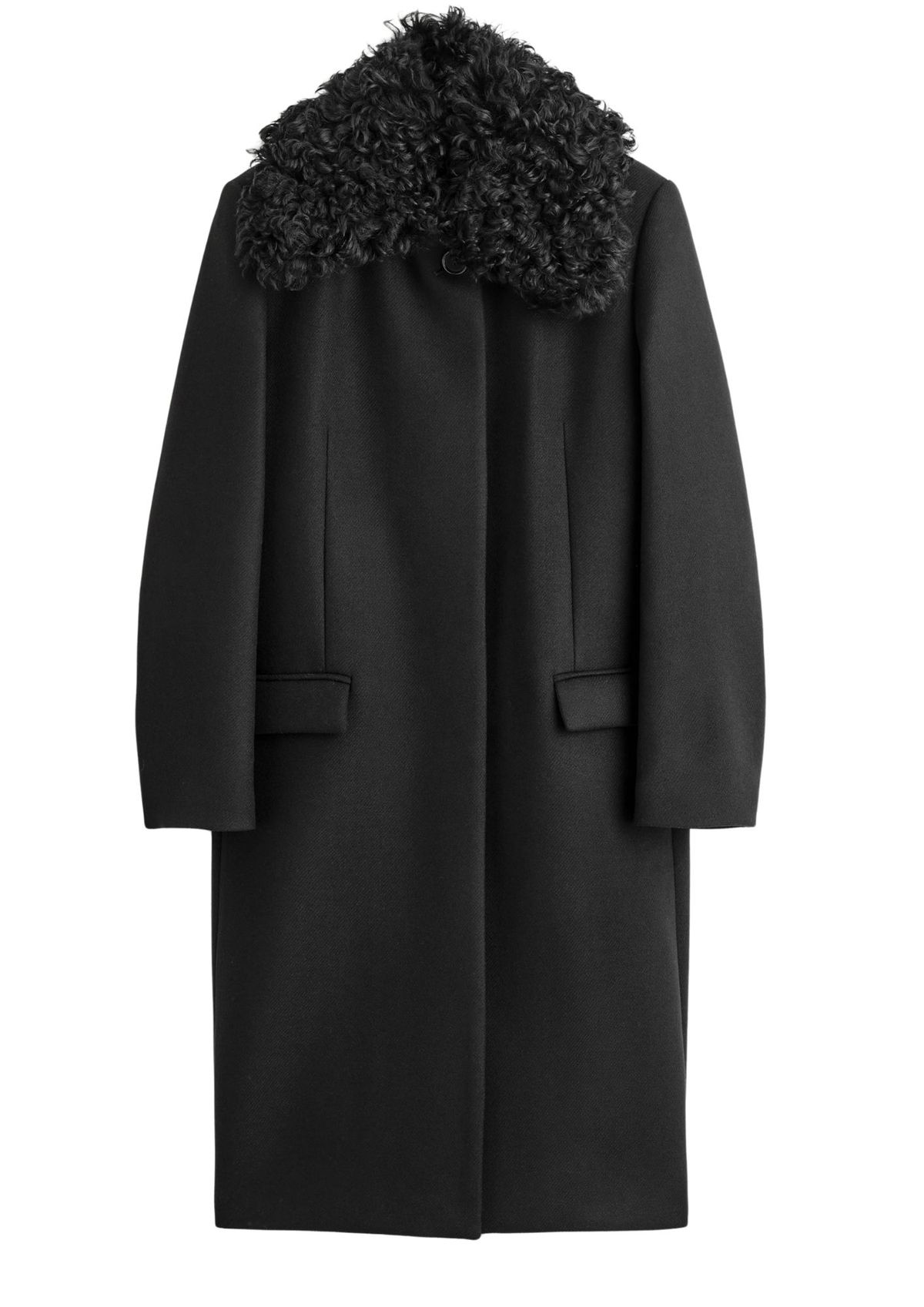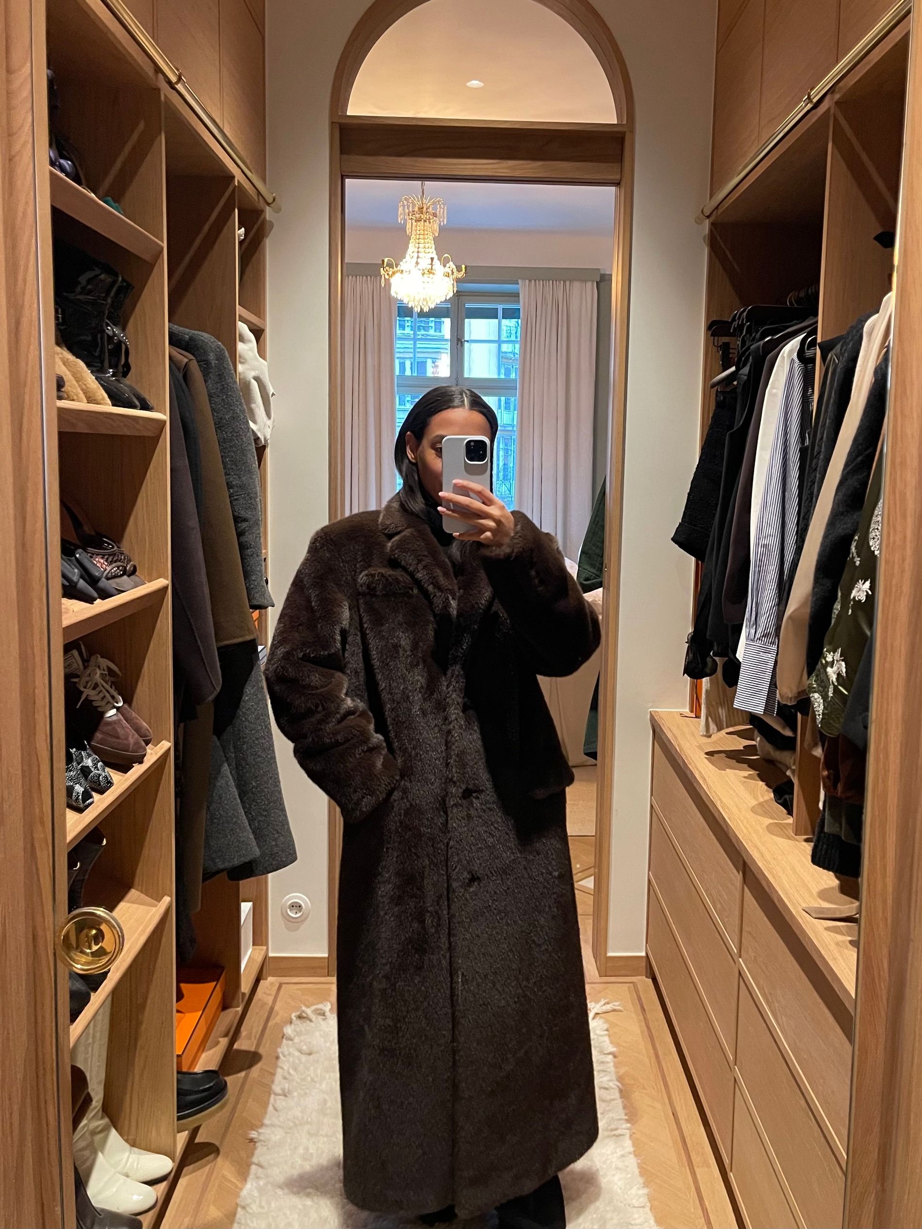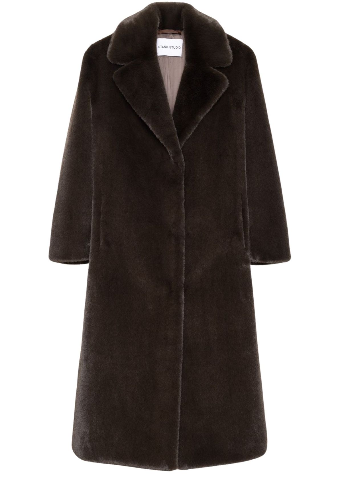 At first glance: This long faux-fur coat checks all the boxes. It has a relaxed fit and a lovely design details, like the top-right pocket that perfectly complements the lapels.
