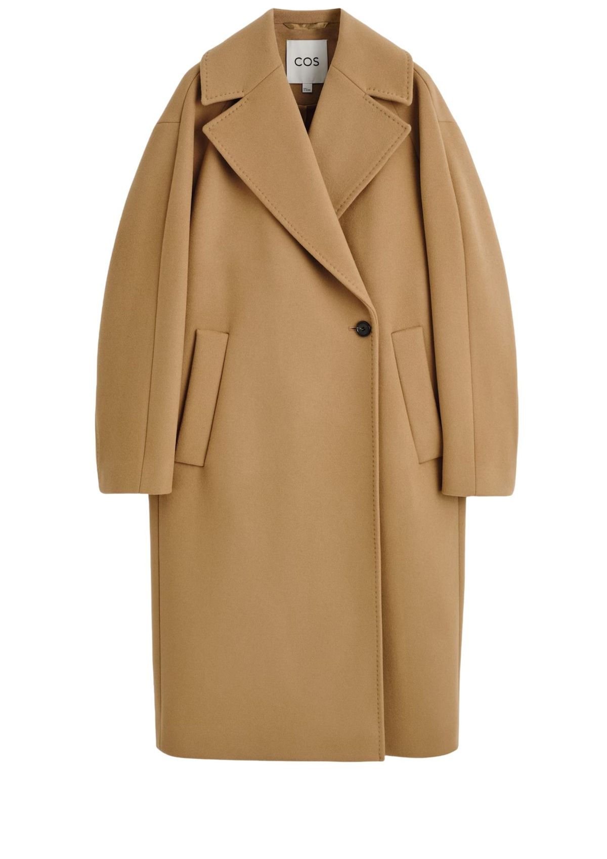 At first glance: A camel coat is a true winter classic, and no roundup would be complete without it. This version found at COS is crafted from a wool-blend and cut in an effortlessly oversized shape.