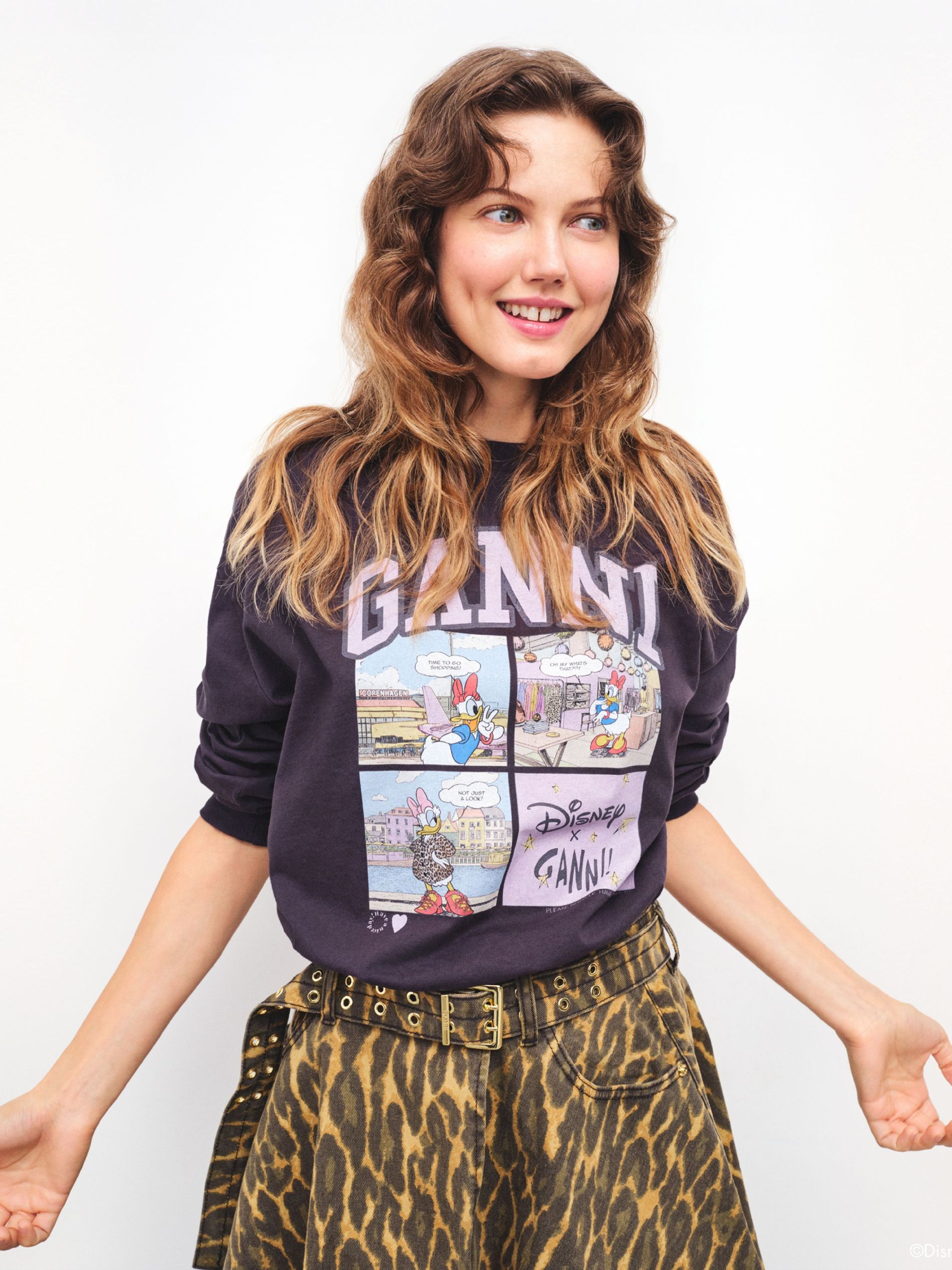 It’s this bold individuality that made Daisy the ultimate Ganni girl. Even her signature look – the pouf-sleeved sweater, often pink or purple, and the massive bow atop her head – appear plucked from a Ganni runway. “Daisy Duck doesn't dress to fit in; she dresses to reflect how she feels in the moment,” says Reffstrup. “That sense of play and individuality is something that feels very Ganni.”