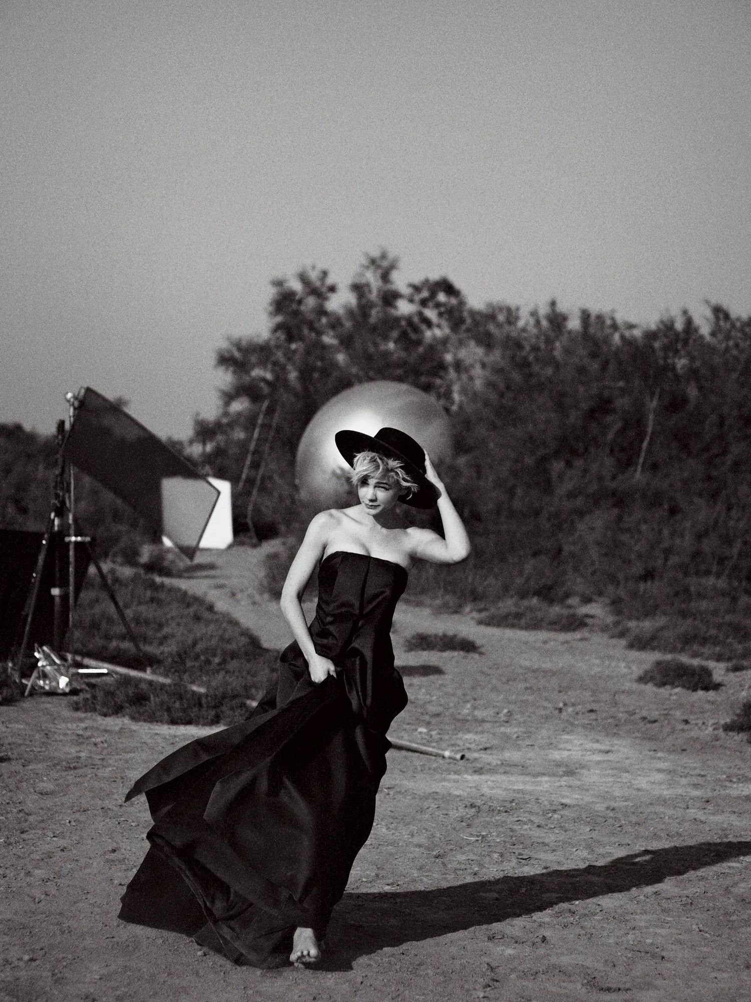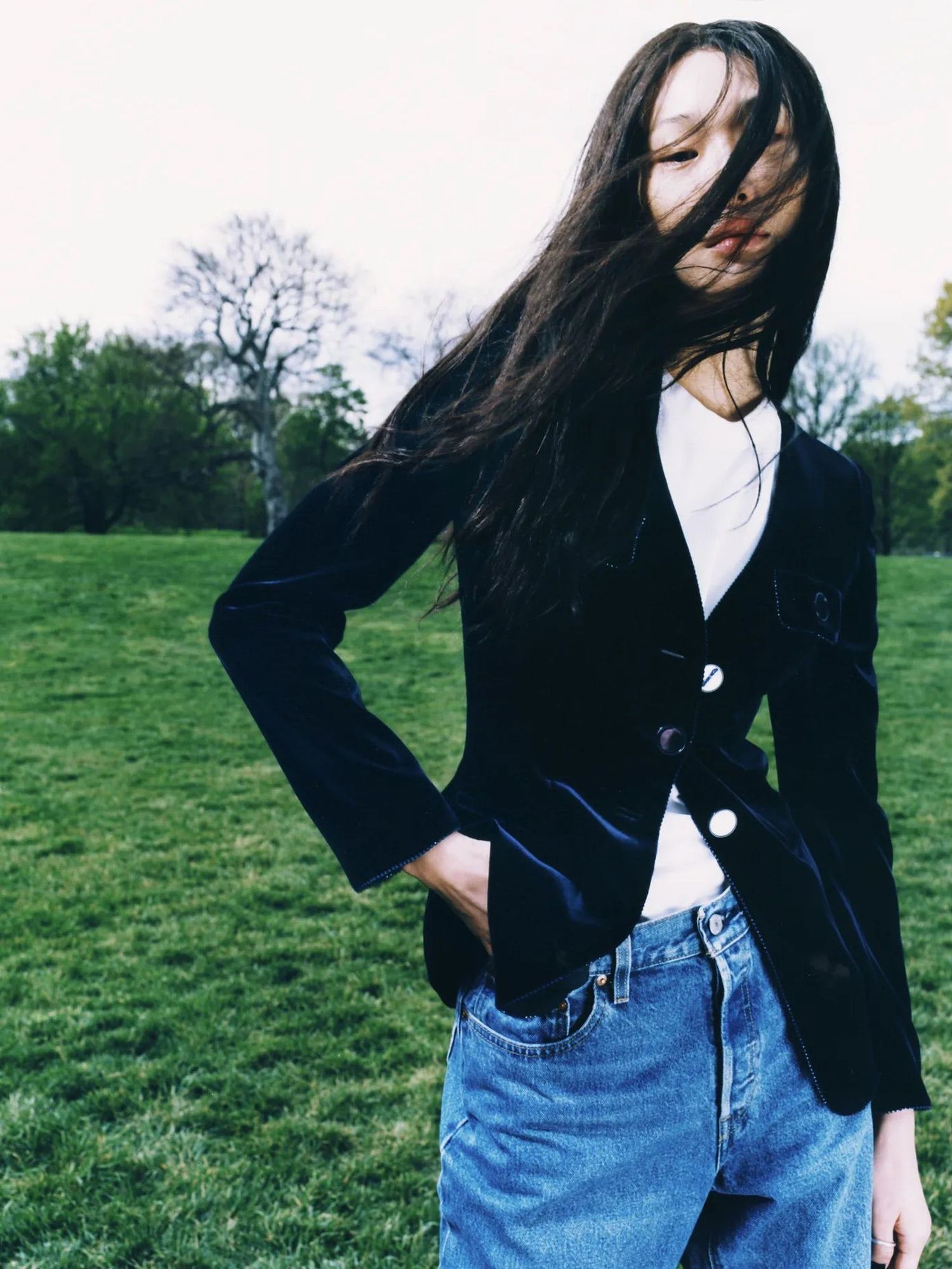 Sora Choi wears a Giorgio Armani jacket. Photo: Samuel Rock, Vogue, August 2022
