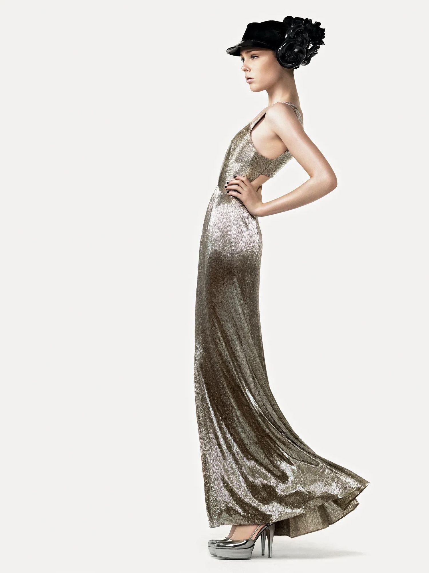 Coco Rocha channels retro-Hollywood glamour in Giorgio Armani’s platinum beaded gown. Photo: David Sims, Vogue, March 2007