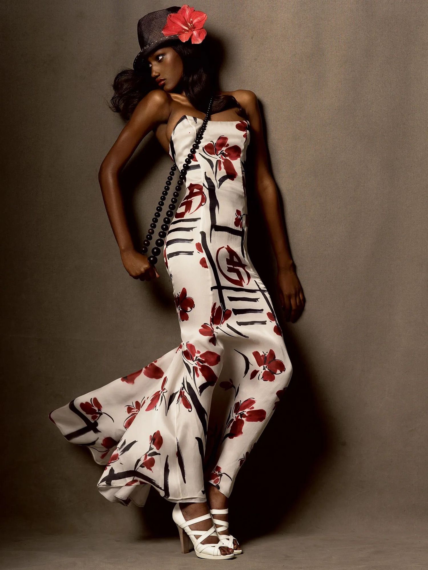 Jaunel McKenzie in Giorgio Armani’s calligraphy dress. Photo: Steven Meisel, Vogue, April 2005