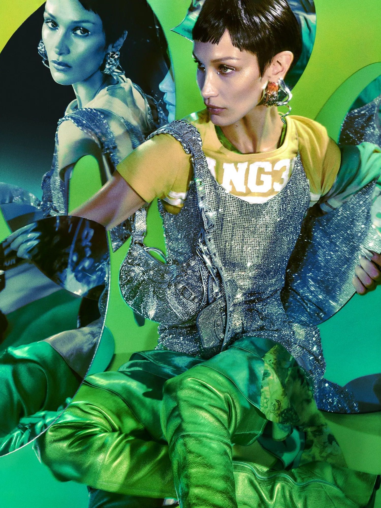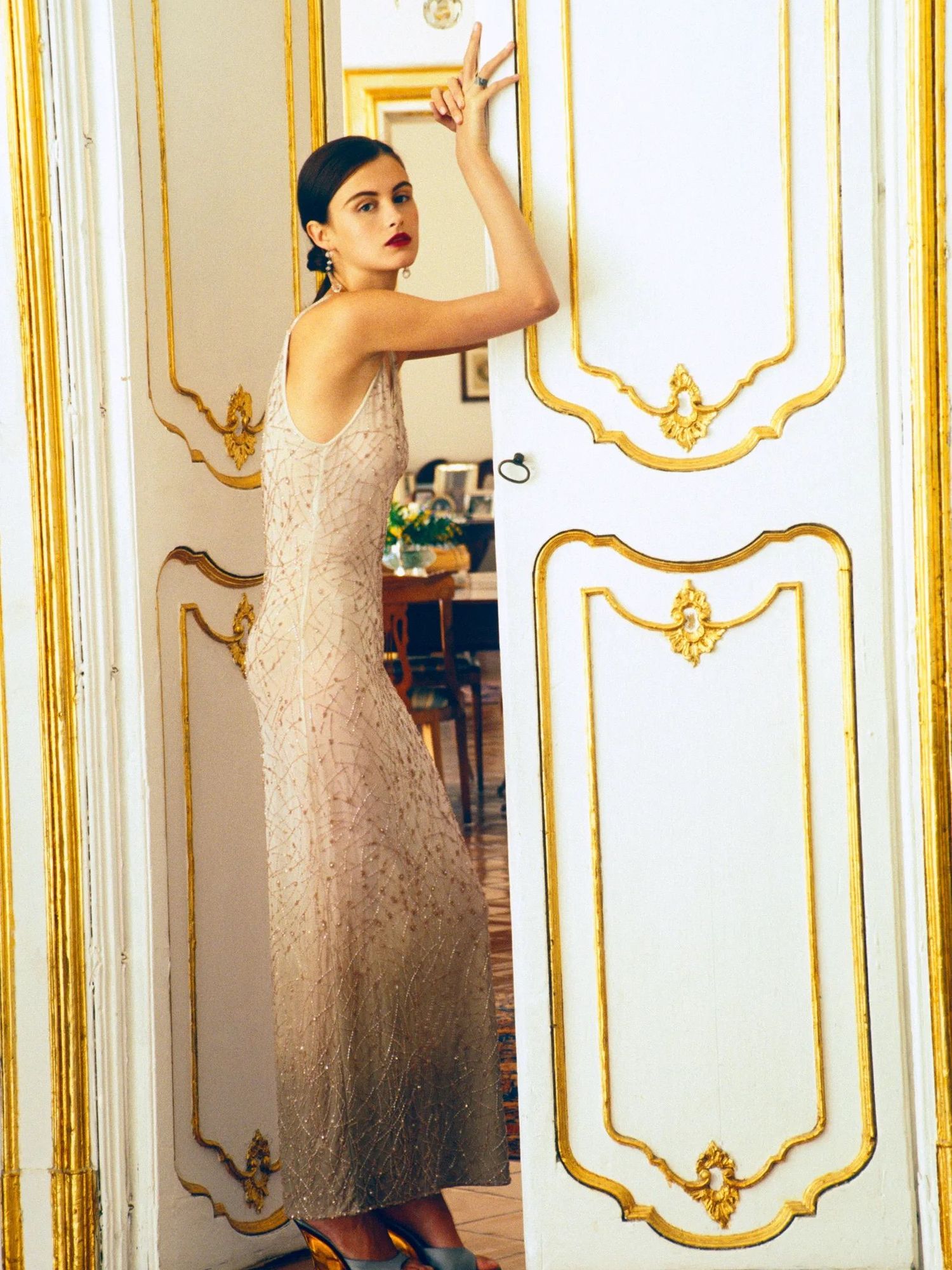 Bella Hadid wears a Giorgio Armani embroidered dress. Photo: Elizaveta Porodina, Vogue, August 2022