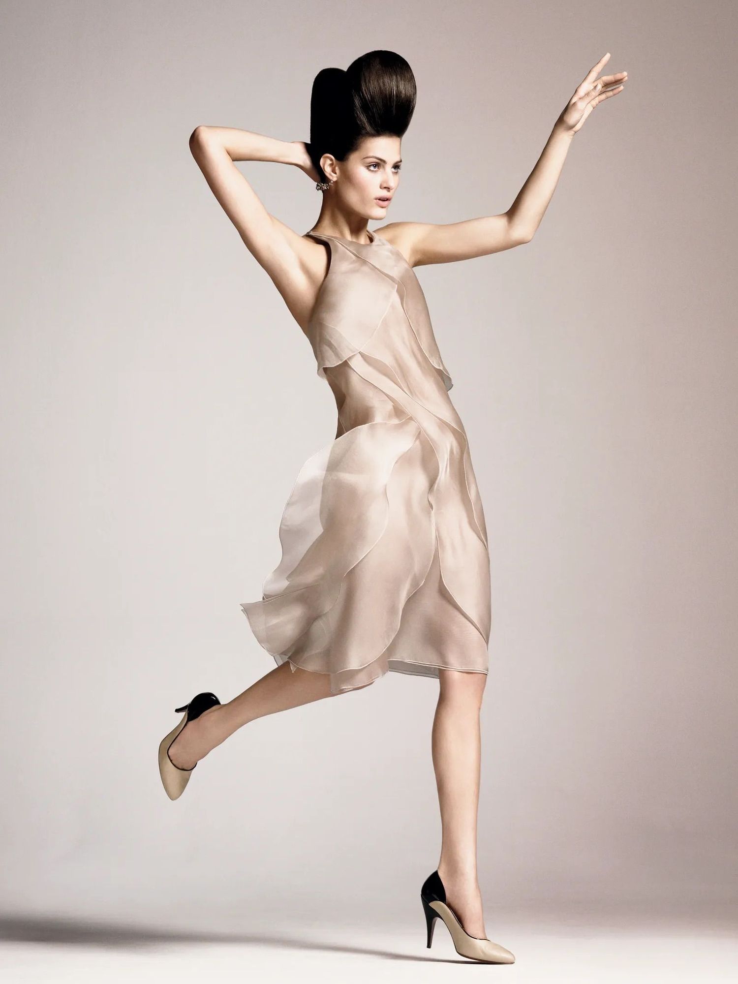 Isabeli Fontana in Giorgio Armani’s “light-as-air” dress of silk layers. Photo: David Sims, Vogue, March 2009