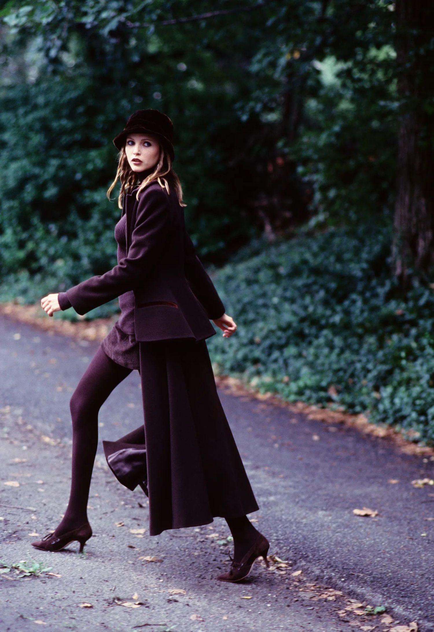 Nadja Auermann in an Emporio Armani coat in a neo-Victorian style. Photo: Arthur Elgort, Vogue, November 1993