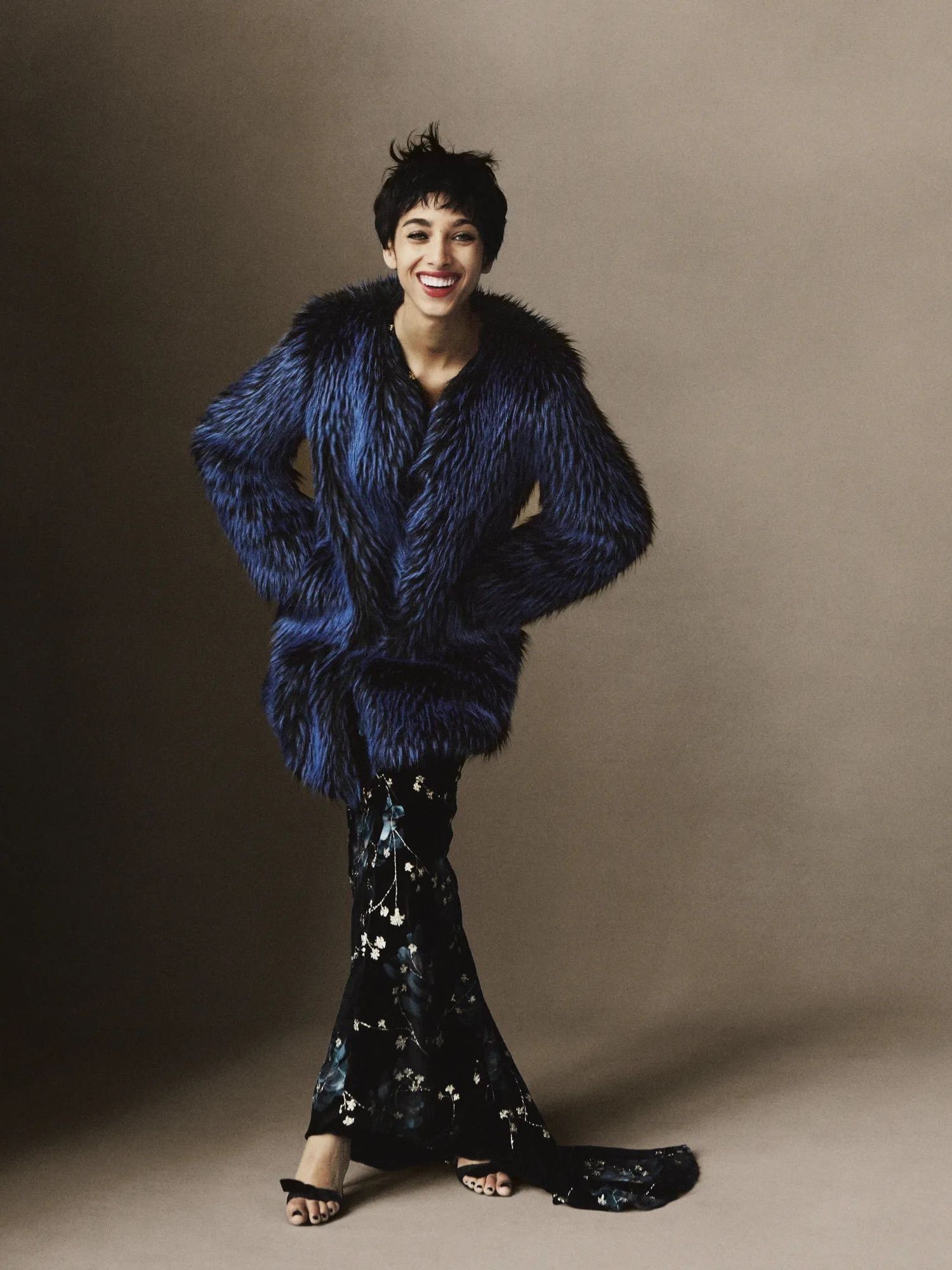 Yasmin Wijnaldum wears an Emporio Armani coat. Photo: Daniel Jackson, Vogue, September