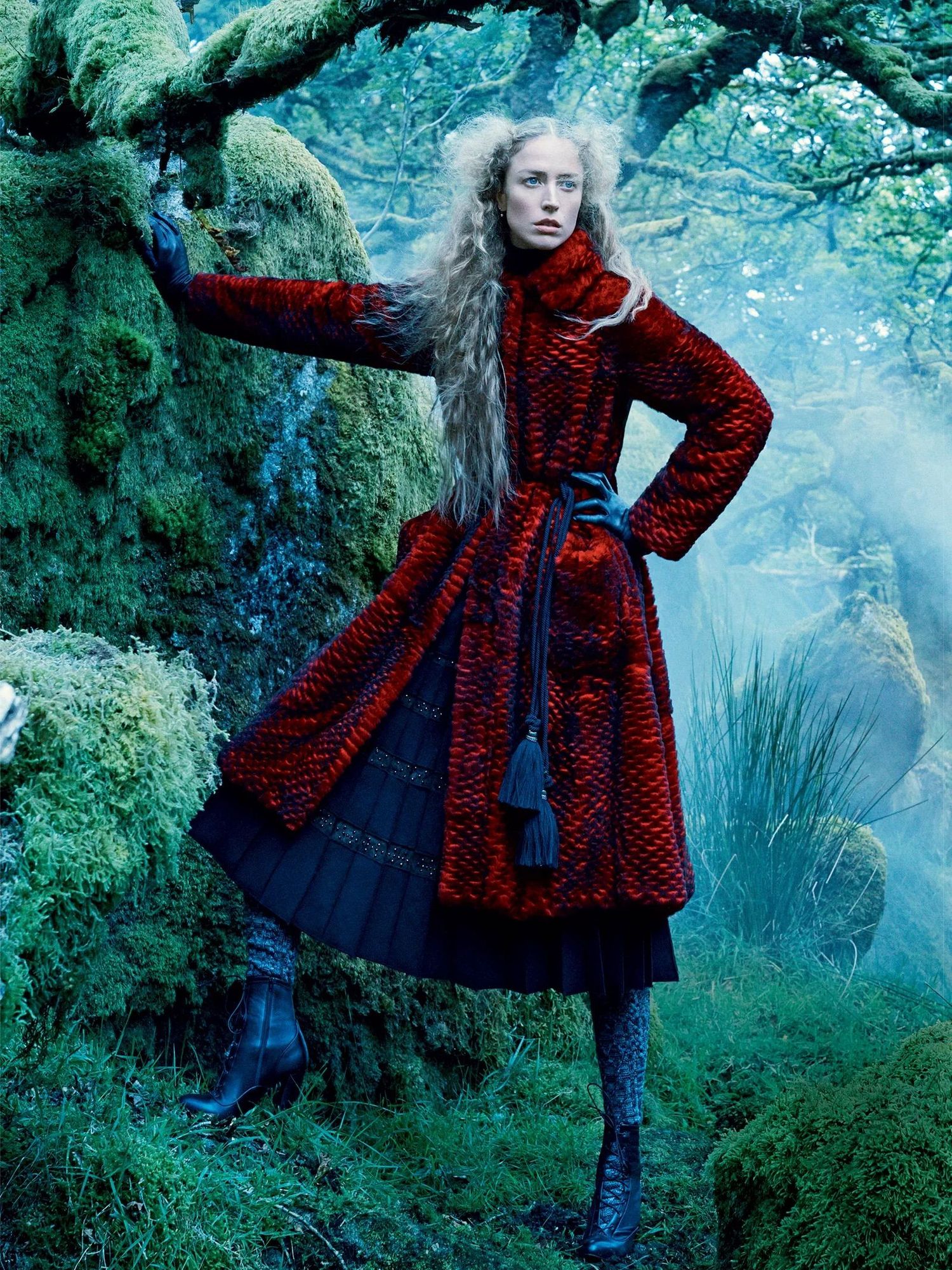 Raquel Zimmermann in Emporio Armani’s scarlet coat. Photo: Mikael Jansson, Vogue, September 2015