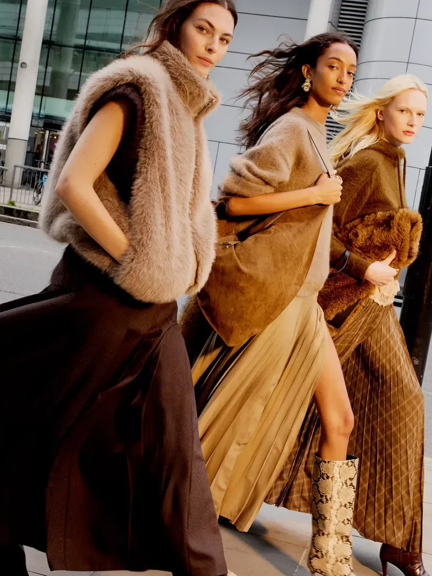 It feels sort of full circle, then, that the reason we’re talking at all is H&M’s autumn/winter 2025 campaign, in which Consani appears alongside fellow models-of-the-moment Vittoria Ceretti, Mona Tougaard, Angelina Kendall and Sara Choi. “It was so much fun,” she says. “Hanging out, listening to music, having a f***ing heyday with all the burgers catering sent to set. And it felt powerful, too, to be with a group of strong women, each with their own stories, coming together to make something. Like, Spice Girls assemble!” The reference is almost too apt: the collection, as H&M’s head of design Ann-Sofie Johansson says, draws on “’90s Britain, and the rebellious, free-spirited vibe that came from the amazing creatives, music, movies and magazines from that era.” For Consani, that means one thing: Spice World. “That film shaped me. Did you see their moving van thing? That is, like, bedroom goals,” she adds. “It’s where you’re going to shoot me for the British Vogue cover I’m still waiting on.”