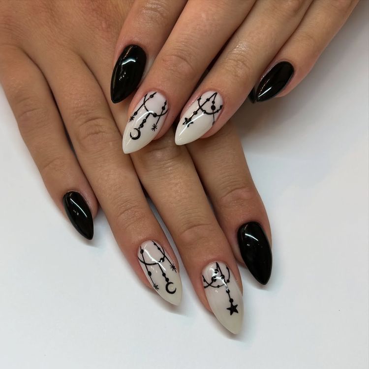 If you're a minimalist, there are still plenty of nail designs help you add some subtle spook in honour of Halloween. Take these ghoulish but great black and white nails, for example. Bone-rattling and understated.