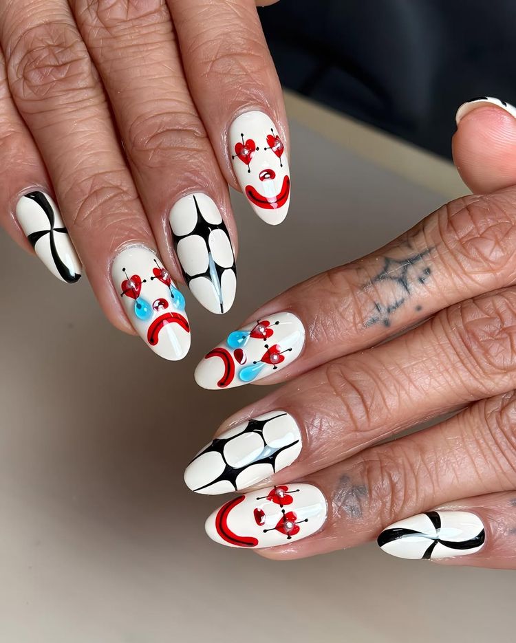 Equal parts whimsical and artfully kitsch, this clown-inspired design is sure to spark a smile (or a scream) this Halloween – especially with those show-stopping 3D details.
