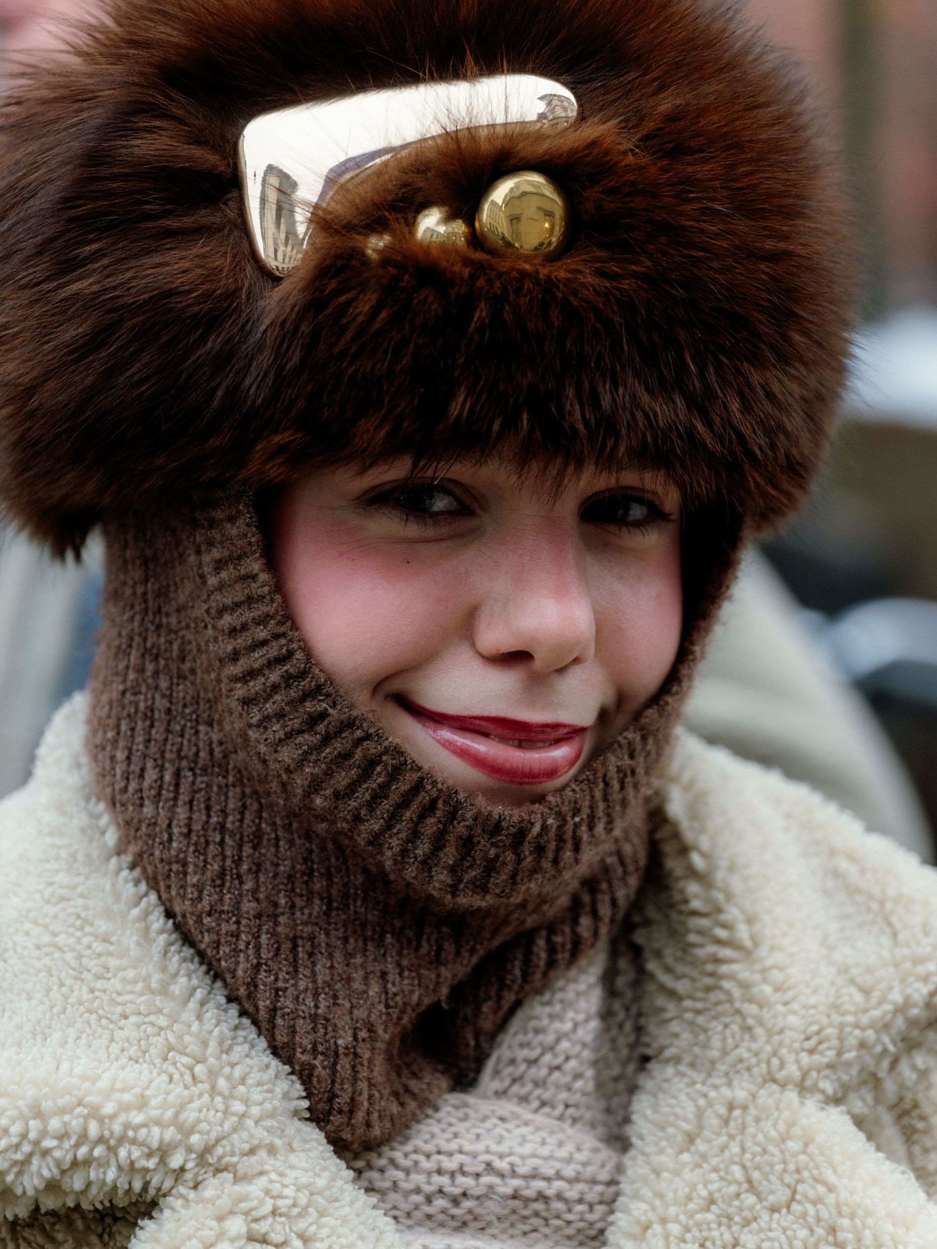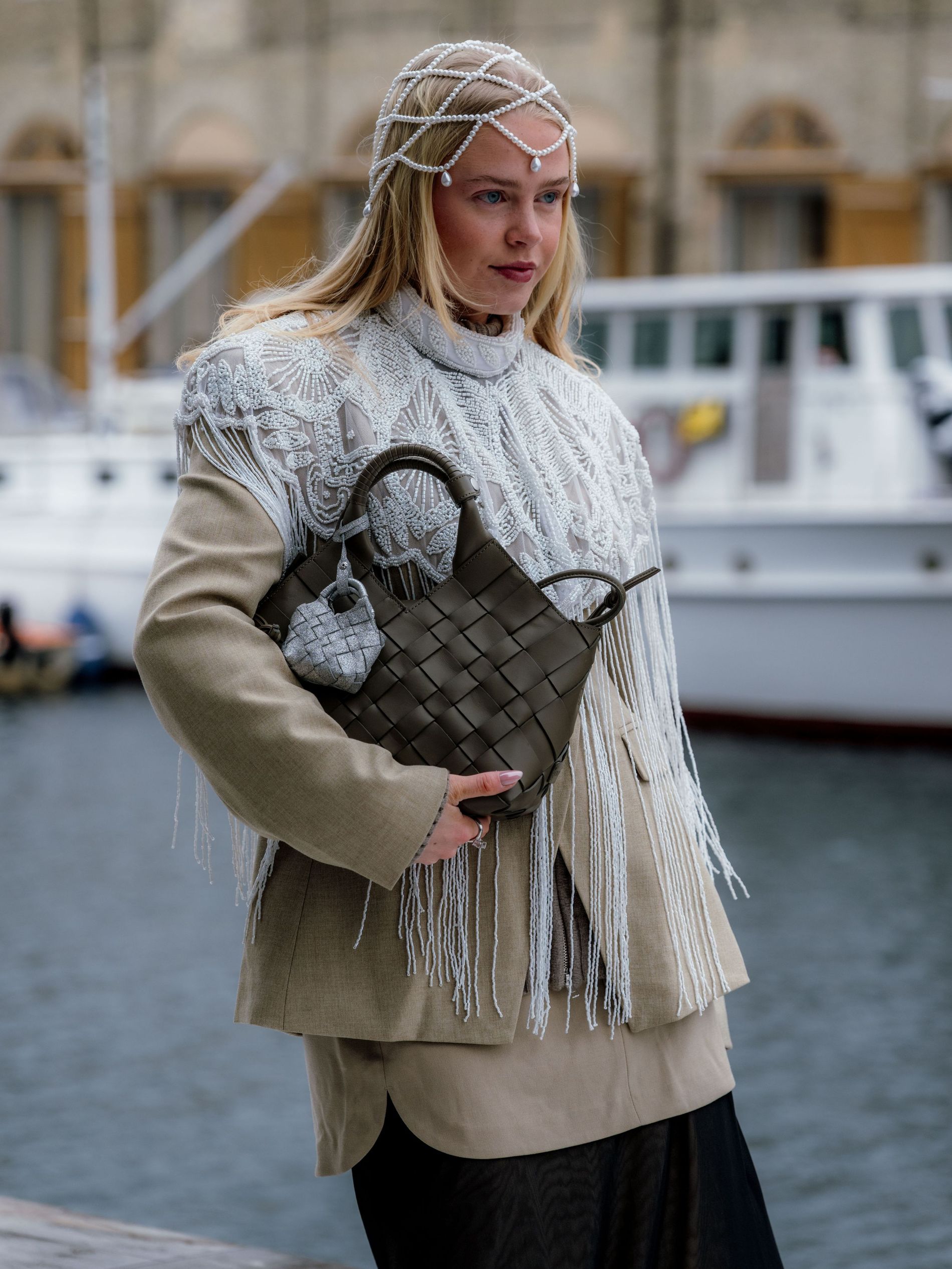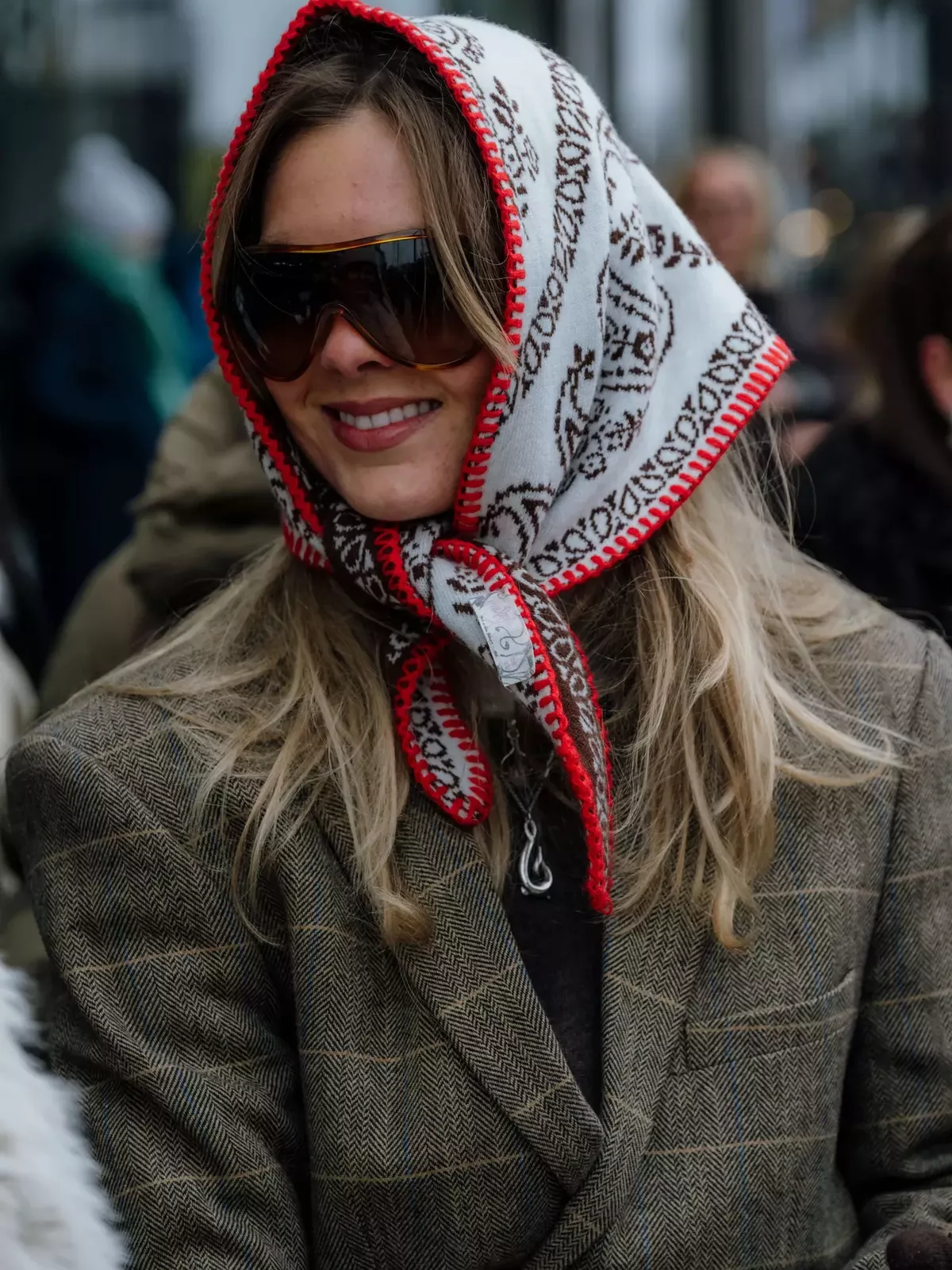 Copenhagen Fashion Week's street style is currently a masterclass in statement headwear. The practical balaclava – a winter staple – has sweetly morphed into the "baby-licious" bonnet: a charming, chin-tied silhouette proving essential for the sartorial yet sensible show-goer braving the chill. Tied-under-the-chin silk scarves have given way to a more whimsical medium, now in knitted form, ideal for those bracing the sub-zero temperatures.