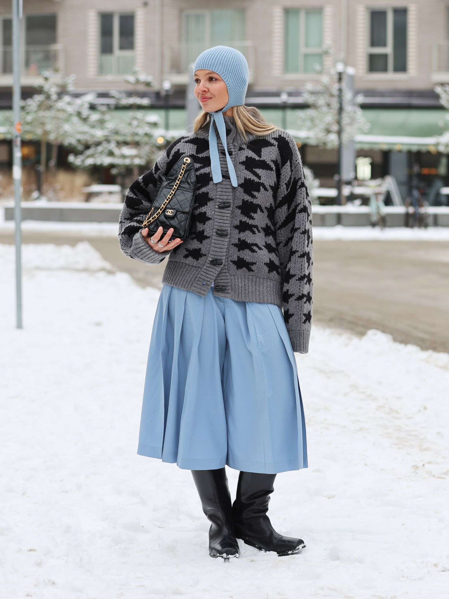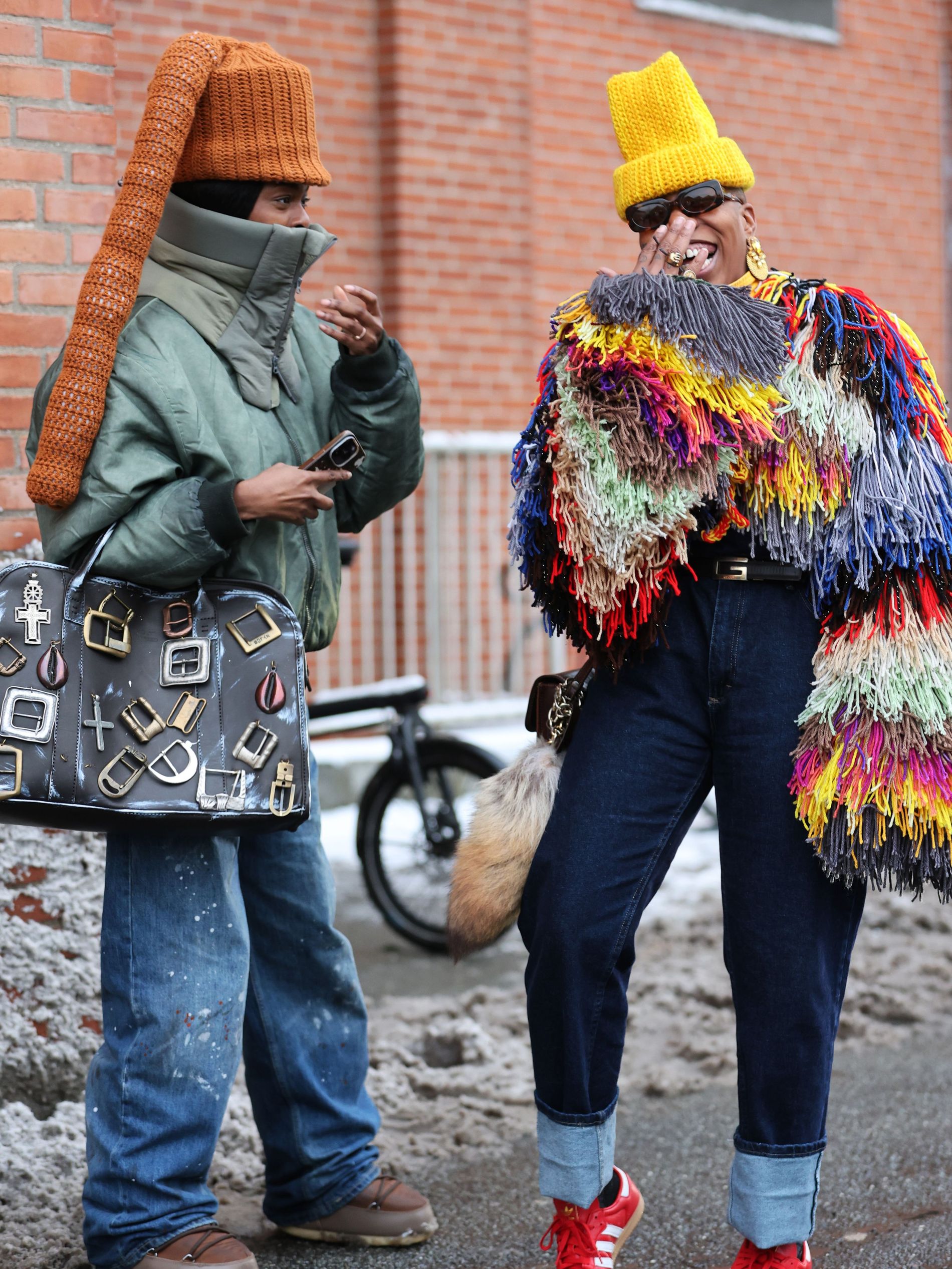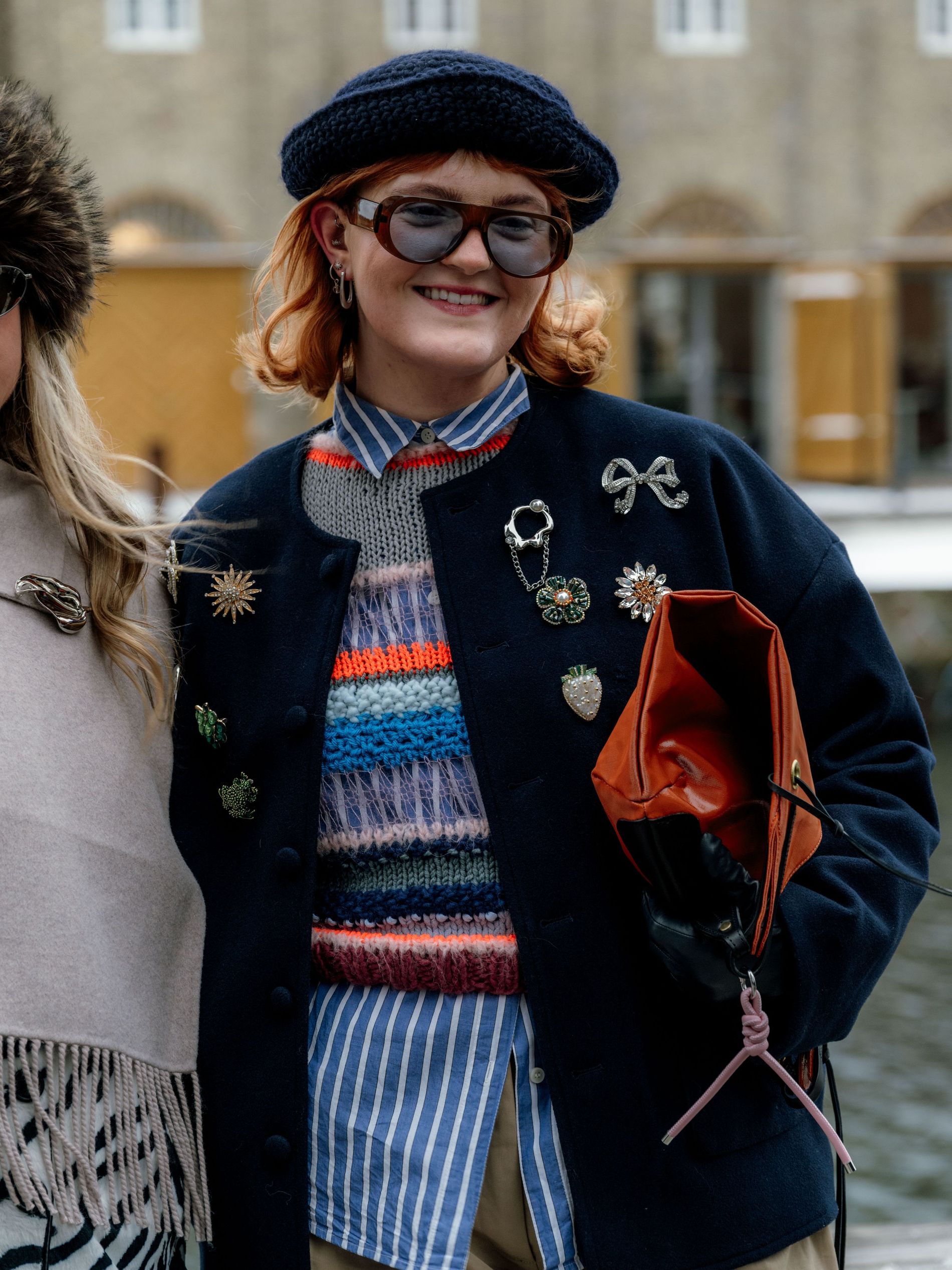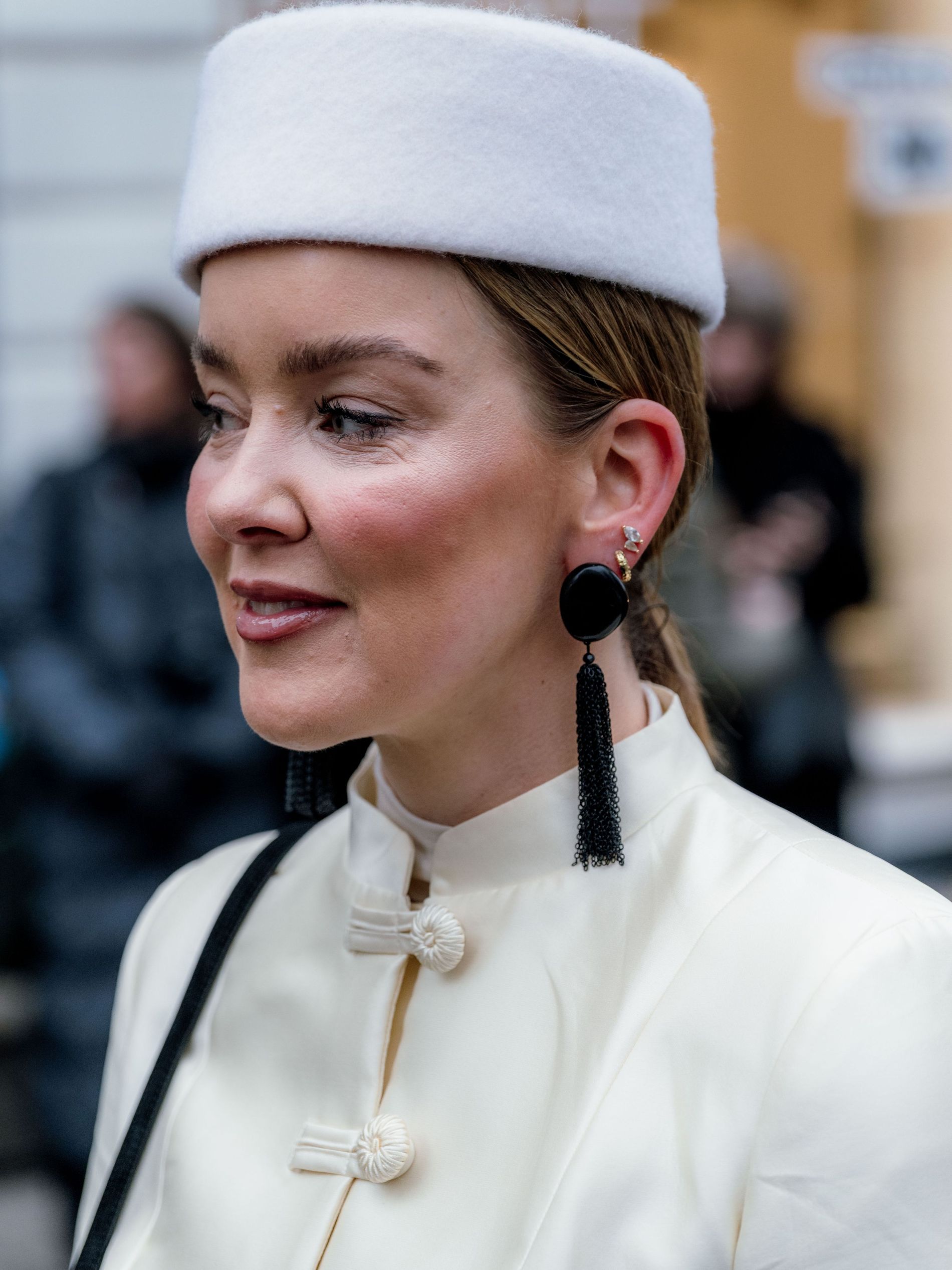Copenhagen Fashion Week's street style is currently a masterclass in statement headwear. The practical balaclava – a winter staple – has sweetly morphed into the "baby-licious" bonnet: a charming, chin-tied silhouette proving essential for the sartorial yet sensible show-goer braving the chill. Tied-under-the-chin silk scarves have given way to a more whimsical medium, now in knitted form, ideal for those bracing the sub-zero temperatures.