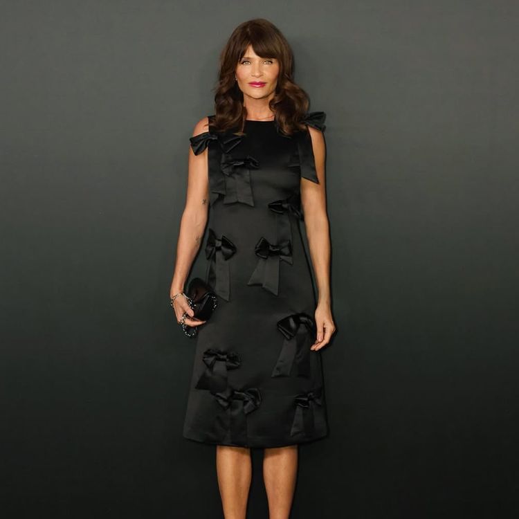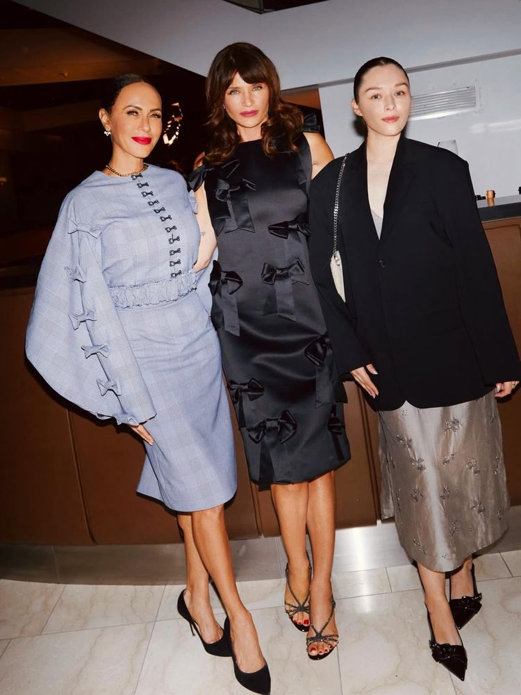 Helena Christensen showed her local pride, donning Ganni at Bang & Olufsen's 100 year party in Copenhagen. See more and shop the bow-adorned frock below