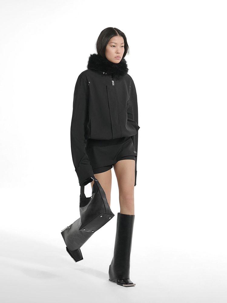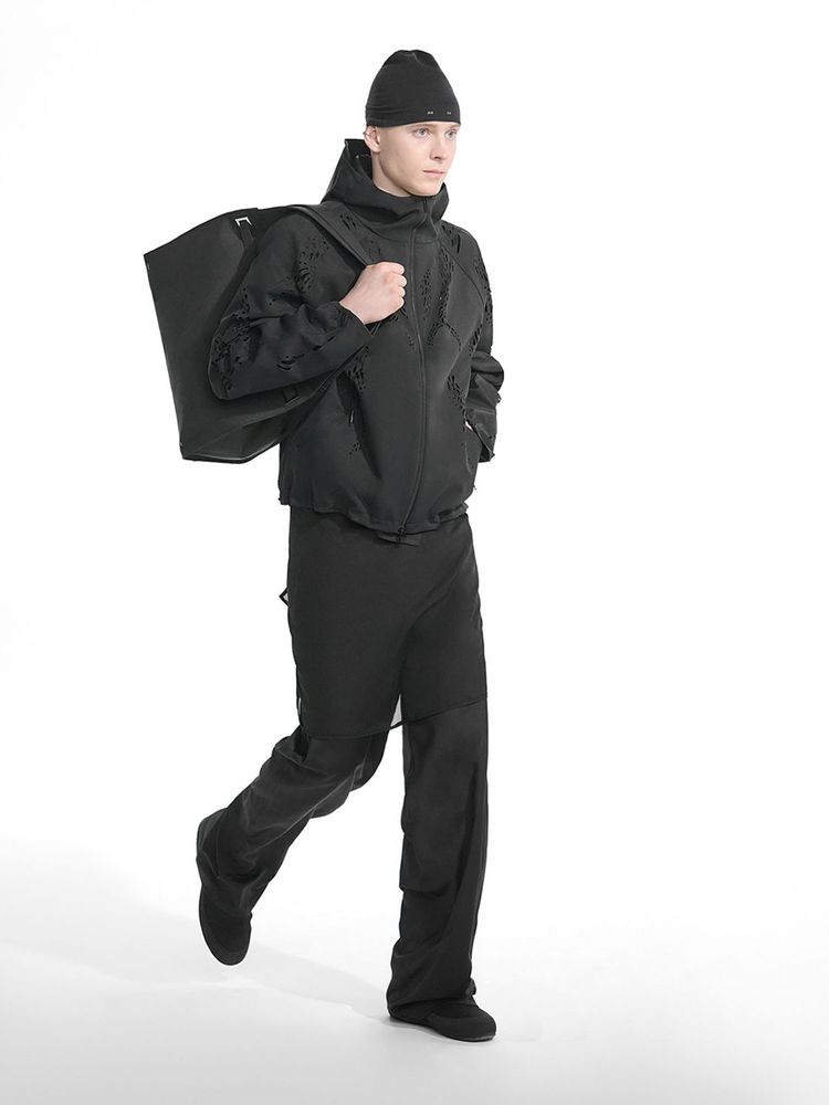 Though Heliot Emil’s sleek, mostly black, tech-forward universe may be somewhat stallion-coded, the brand doesn’t exactly scream ‘horse boys’. Yet when viewed through a less yee-haw lens, it becomes clear that Heliot Emil does, in fact, horse around. “We’ve always had this design philosophy called ‘industrial elegance’,” says Juul. “And I feel like horses are the encapsulation of industrial elegance, because it was introduced as a very industrial use case.” He has a point – these days horses are largely associated with rarified leisure and sport activities, but once upon a time they were an industrial tool for farming and warfare.
