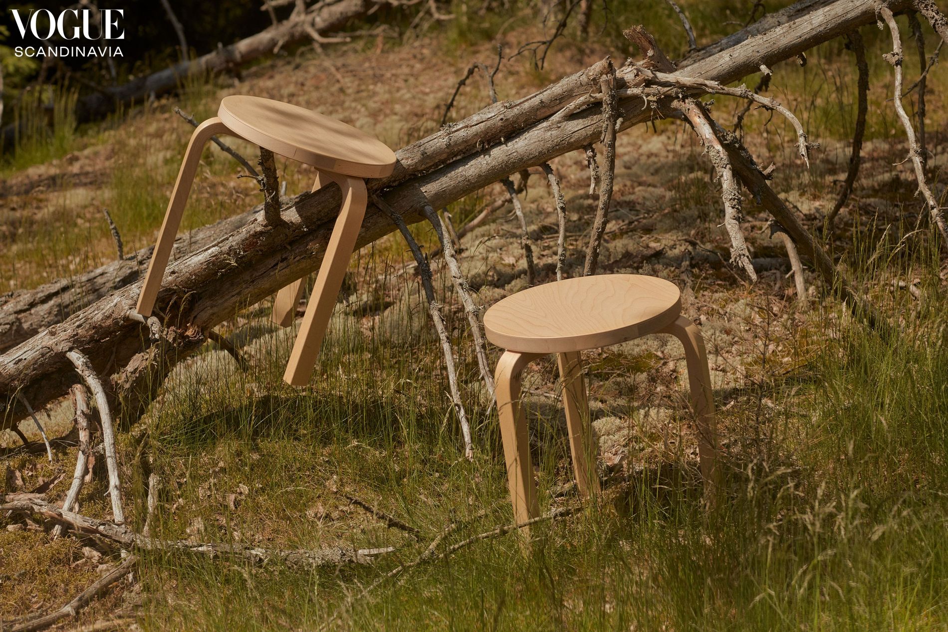 One of Aalto's most popular designs, the Stool 60, featured in Vogue Scandinavia's August-September 2022 issue. Photo: Johanna Laitanen