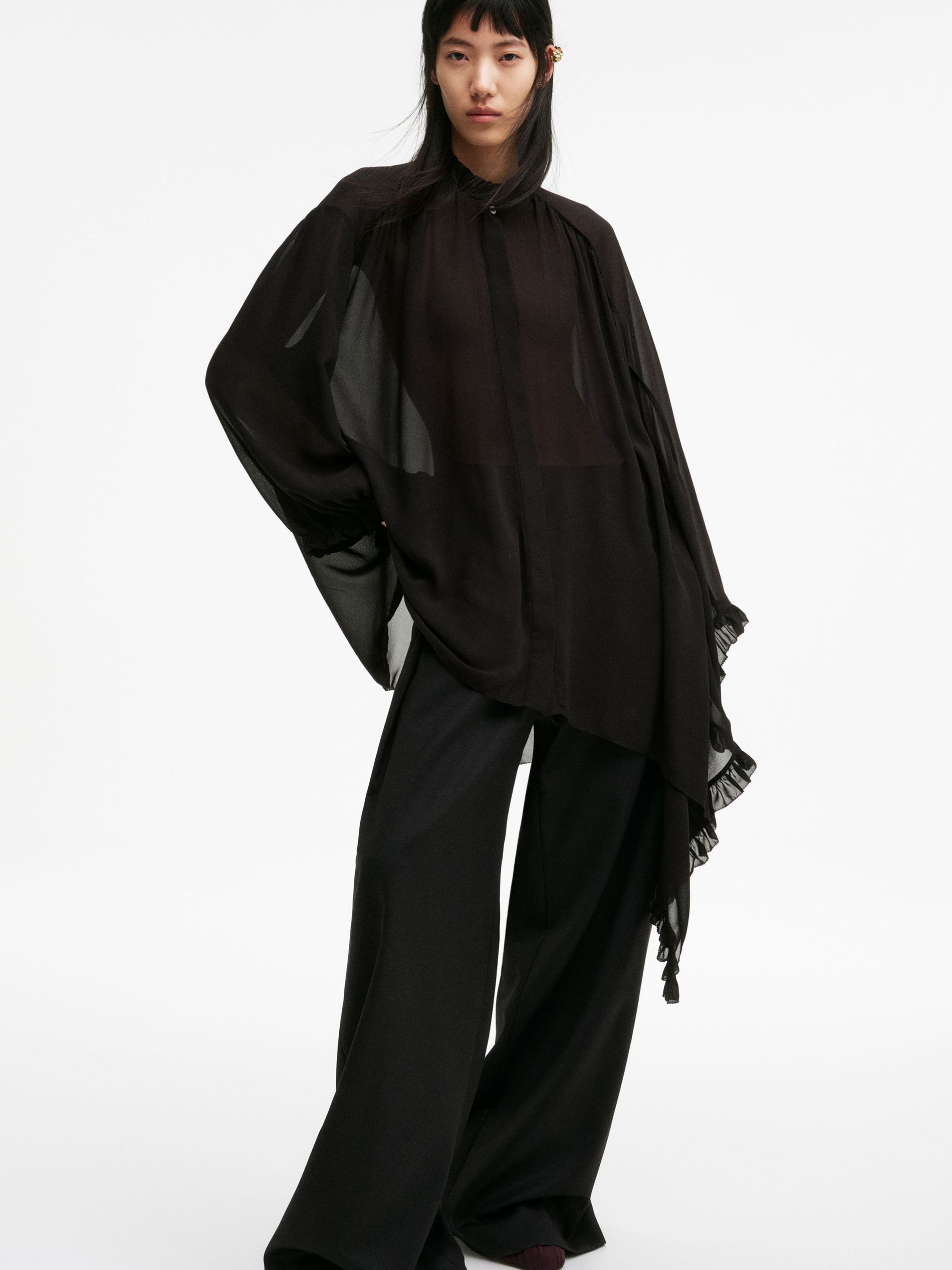 Into a world full of absurdities and affronts, H&M Studio launches a spring 2026 collection based on the idea of the gentle disruption of eccentricity. The word means “something that is a little bit on the side or skewed – it’s not centred, anyway,” said Ann-Sofie Johansson, the company’s creative advisor. Linda Wikell, the lead on Studio collections, “thought that a collection made with that kind of vibe or intuition could be really interesting because it sometimes feels that everything today looks very much the same and everything leads to these kinds of archetypes,” Johansson continued. “How can we then make that a little bit more interesting?”