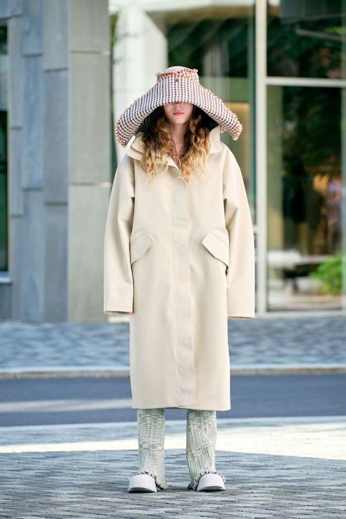 In quintessential Holzweiler fashion, the approach to dressing was tongue-in-cheek. There was a playfulness in the wide-brimmed hats, loose silhouettes and quilted details as the colours green, blue and beige permeated the utilitarian collection in tearaway trousers and teddy sweaters. Styled with heavy boots or low strappy heels, the layered looks were a testament to the brand’s effortless wearability.
