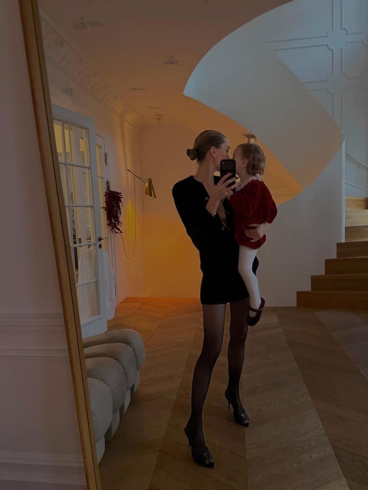 Swedish supermodel and two-time Vogue Scandinavia cover star, Elsa Hosk, celebrated Christmas in her Los Angeles home. Posing in vintage Dior, Levi's, and Alaïa in front of a festive red and white bow-decorated tree (with matching ribbons in her daughter Tulli's hair), Hosk was joined by her fiancé, Tom Daley, and daughter. To help combat her homesickness and bring a touch of Scandinavia to the warmer Western American climate, the Swede cooked up a traditional pot of risgrynsgröt (rice porridge).