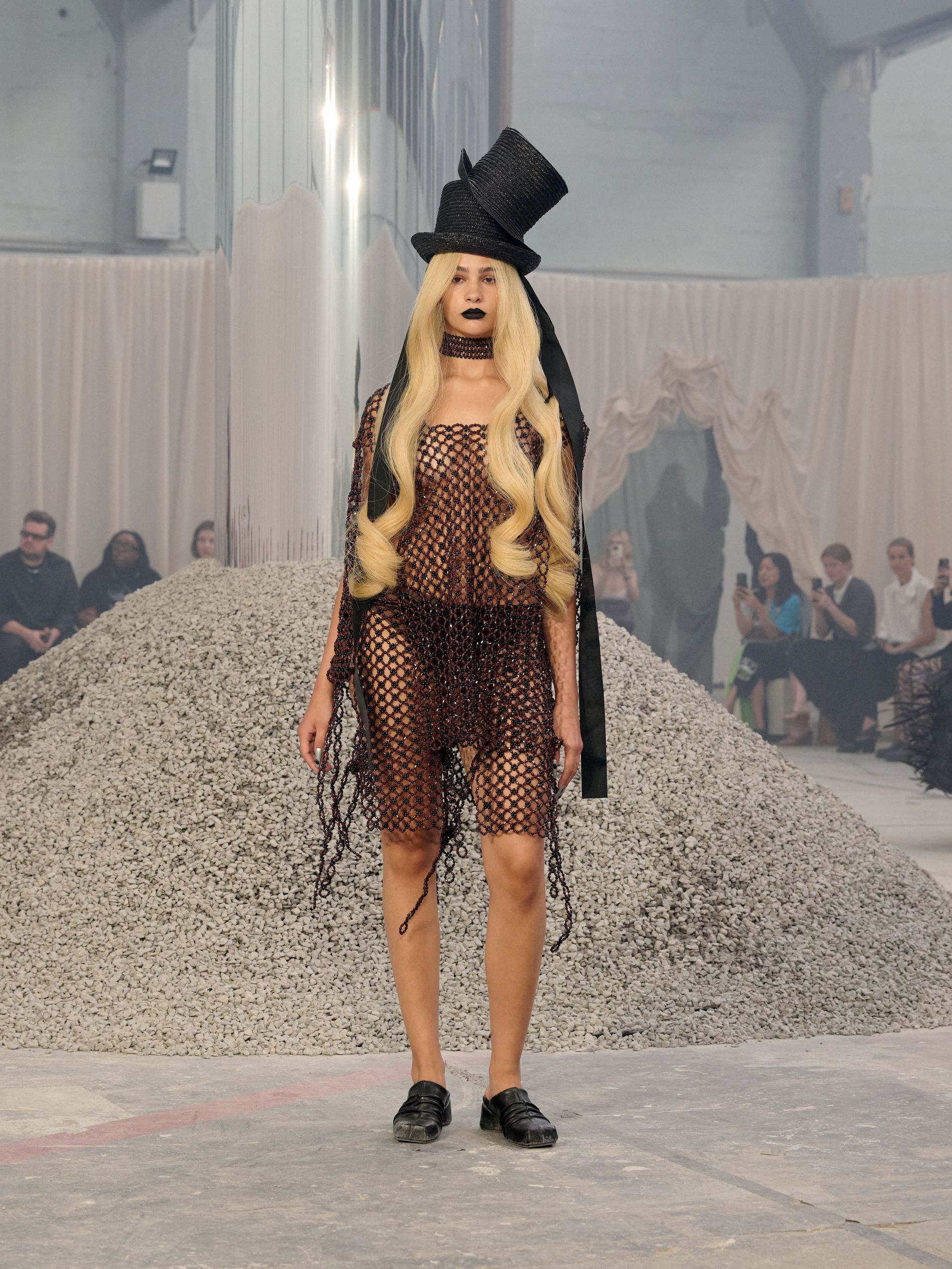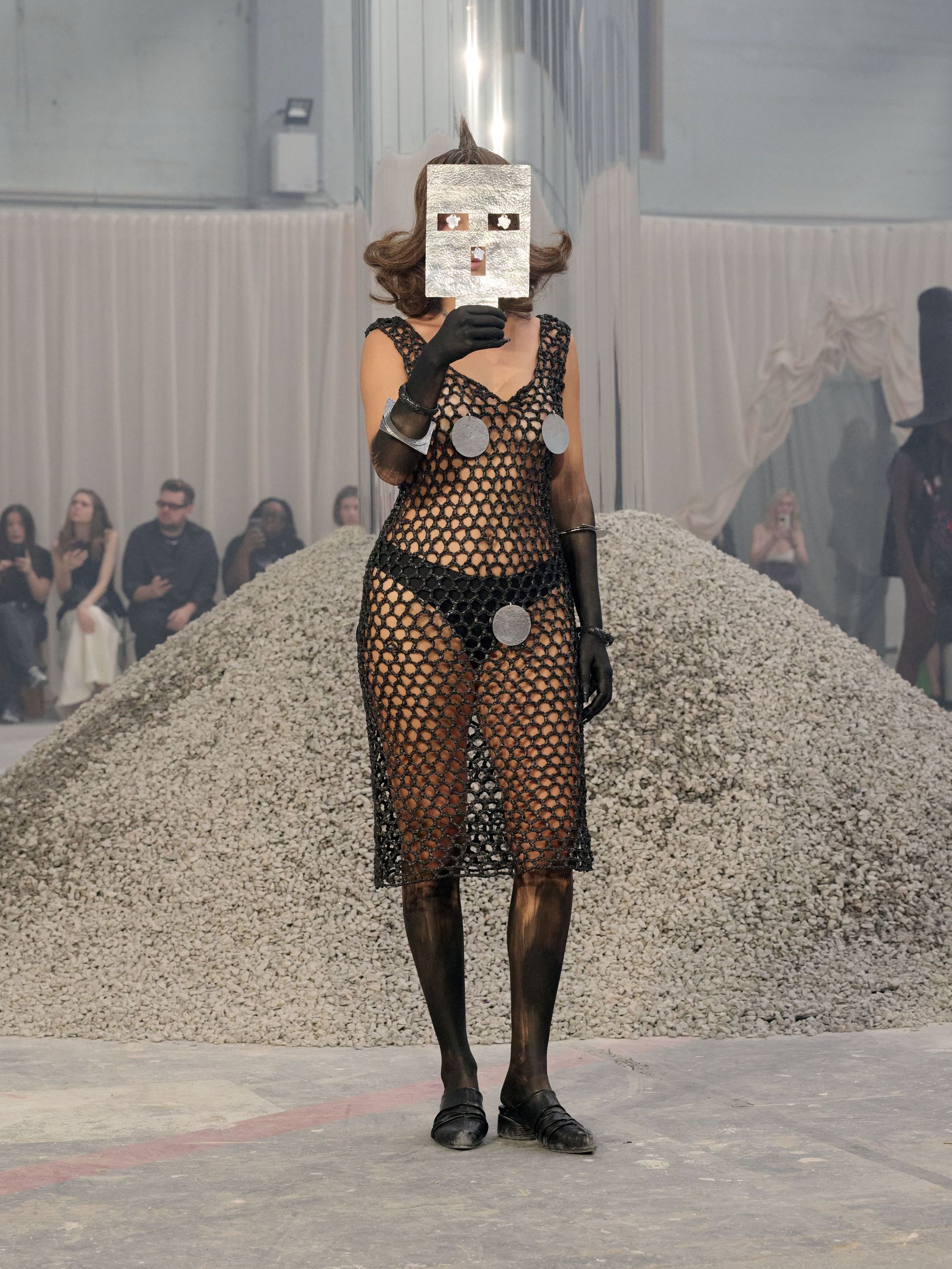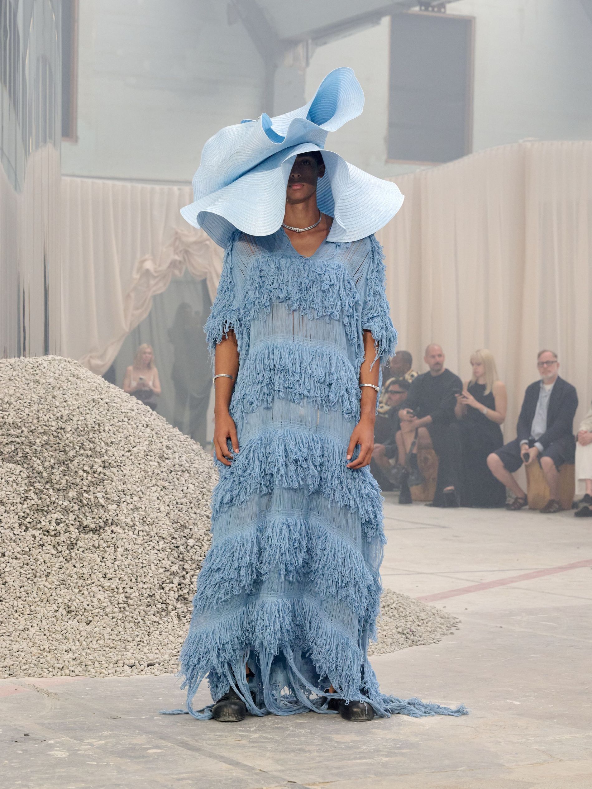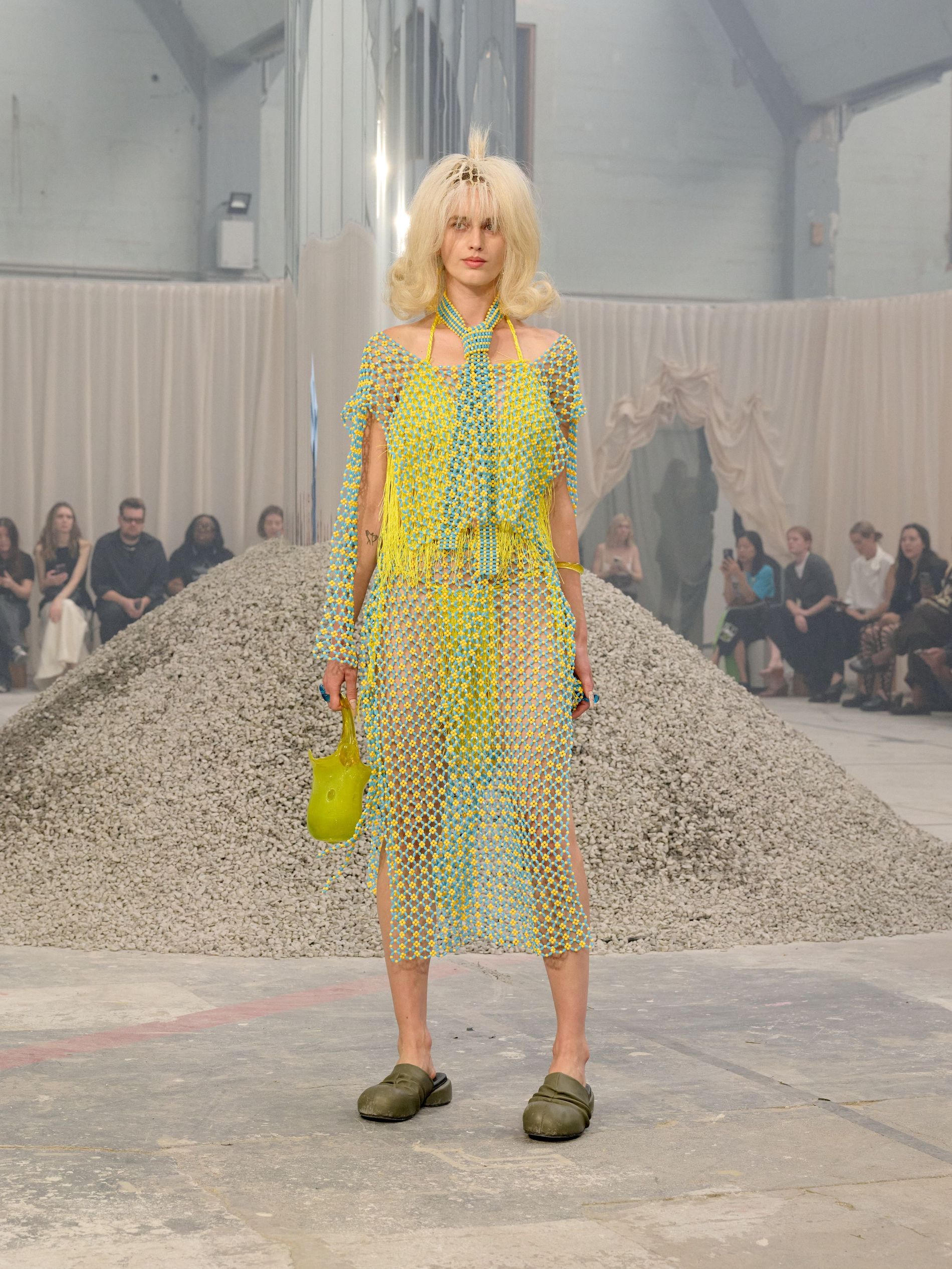 The collection may not have been about spectacle, but it was certainly about beauty and craft. Drawing on the brand’s roots in Lagos, Nairobi, and Accra, the garments are a symphony of material: cotton from Uganda and Kenya, raffia and jute from Nigeria, sisal from Tanzania. But, as Ogisi puts it, these materials are only “half the story”. “The real magic is in how they’re transformed,” she says, listing off hand-weaving, chainmail forging, fibre knotting and glass blowing as four techniques on view on the runway. IAMISIGO collaborated with artisans from across Africa (Kenya and Nigeria in particular) to “reclaim pre-colonial and indigenous techniques as ancestral technologies”. “These aren’t decorative,” Ogisi adds. “They’re functional, spiritual, encoded with memory.”