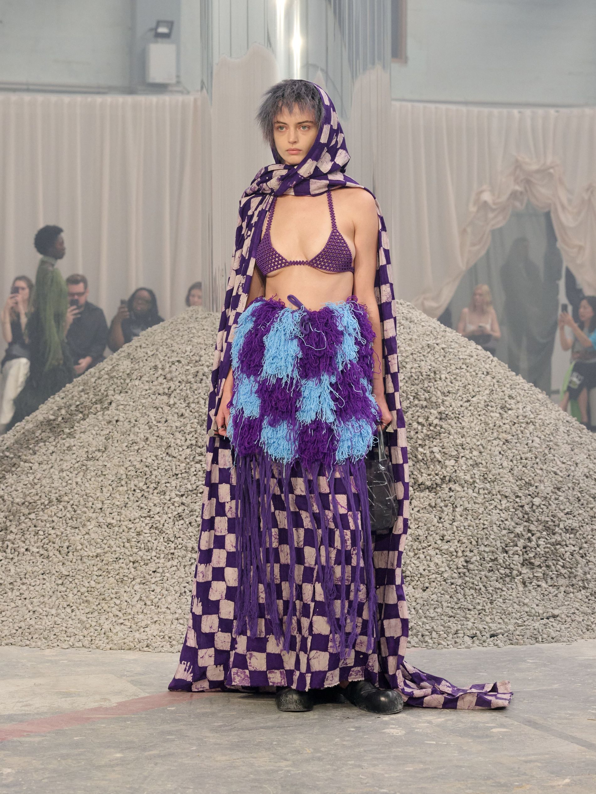 On that note, IAMISIGO’s latest offering, presented at CPHFW for the first time as the recipient of Zalando Visionary Award, is pure, unfettered celebration of the conflicting and collaborating elements that make up the self. “The collection explores body, mind, spirit and emotion as intertwined terrains,” says Ogisi. “Each piece is an instrument – meant to ground, to tune, to expand. It’s not about spectacle. It’s about energetic alignment.” Ogisi describes the show itself as more “ceremony than fashion presentation”, with the raw, industrial space echoing the pulsing music (it’s percussion, layered with filed recordings) as a diverse cast of models, each encouraged to bring their own stories and experiences to the moment, come down the runway.