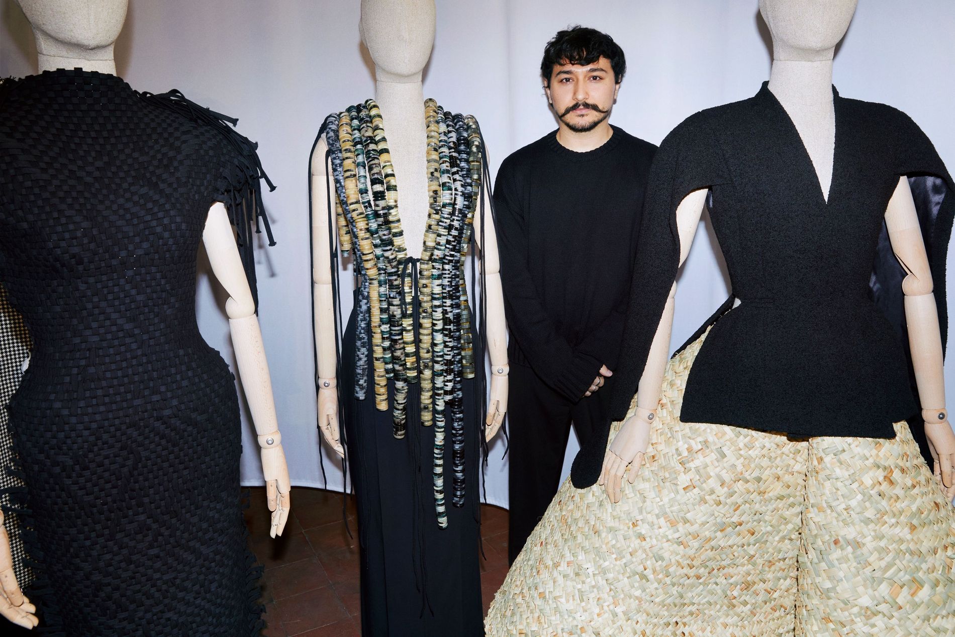The word community looms large in the Institution universe. More than just a brand, Institution is a movement. Based on Gassanoff’s Azerbaijani heritage (the designer hails from Tbilisi), it operates as a social-artistic organisation, unafraid to challenge structures and norms. Aesthetically, the brand is deeply rooted in craft, drawing on the traditions of local ethnic groups to create a distinctly modern visual universe that revels in texture and striking silhouettes.