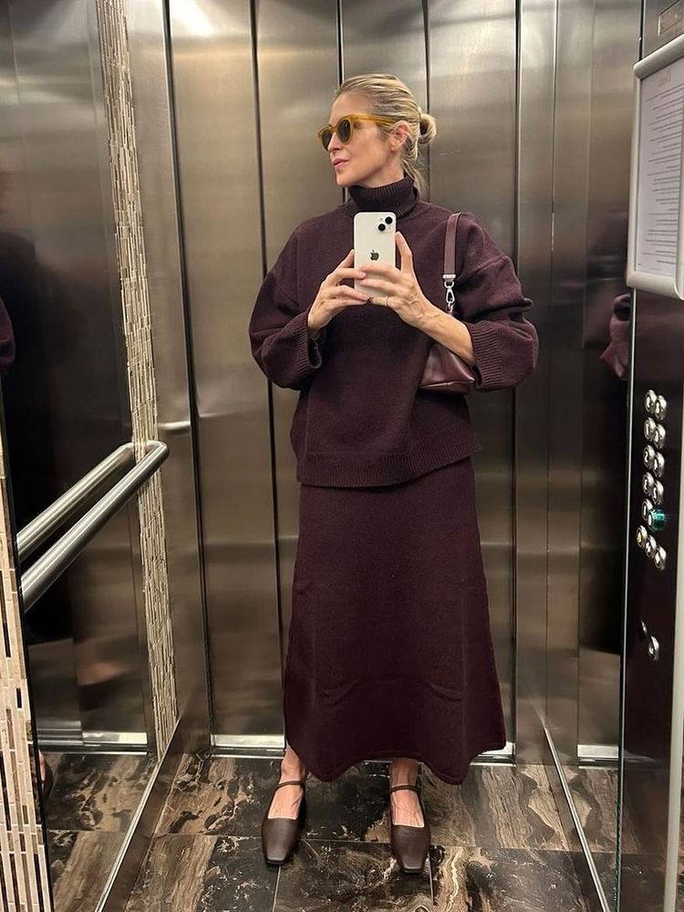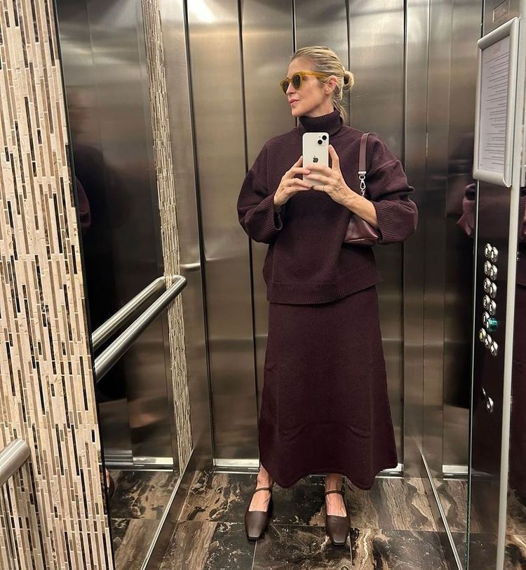 Now, amidst her rotation of red carpet and front row appearances, Rutherford has shared her top selection of shoe for autumn with her two and half million social media followers: Swedish ATP Atelier's 'Petina' leather Mary-Jane flats. First captured in one of her signature mirror selfies was the design in the colour of the season, burgundy.