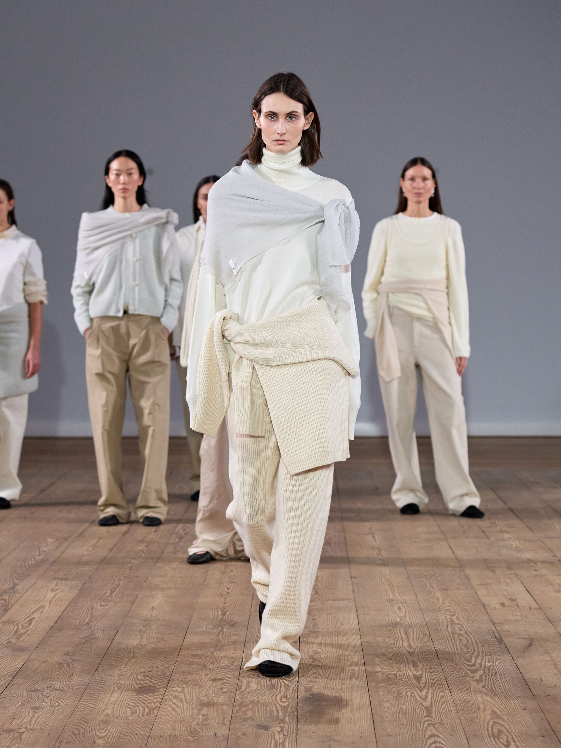 On the streets, scarves were wrapped round heads to stave off the chill, but on the runway they were baked into the very fabric of the looks. Yes, scarves and blankets with delicate fringes, reimagined as draped dresses and elegant skirts were all over the runways, with many iterations – the blanket coats at Anne Sofie Madsen, the gowns at Taus – featuring upcycled materials. Talk about fringe benefits.