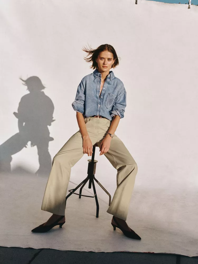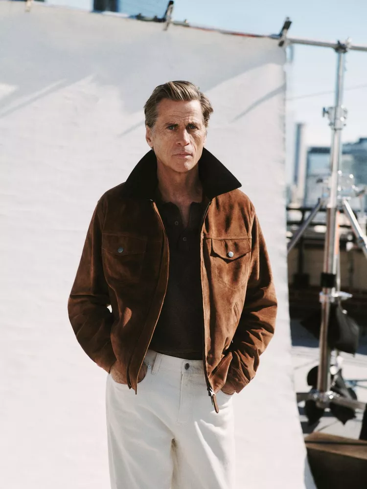 That spirit is embedded in the clothes themselves. The SS26 collection revisits the enduring codes of American sportswear: chinos, crisp shirts, collegiate sweats, trench coats and softly structured tailoring, all designed with a functional elegance. Hutton’s verdict? “Effortless! Makes me feel like I can put ’em on and forget them. Clothes you can live in and never worry about how they look. Very few designers can you do that with.”