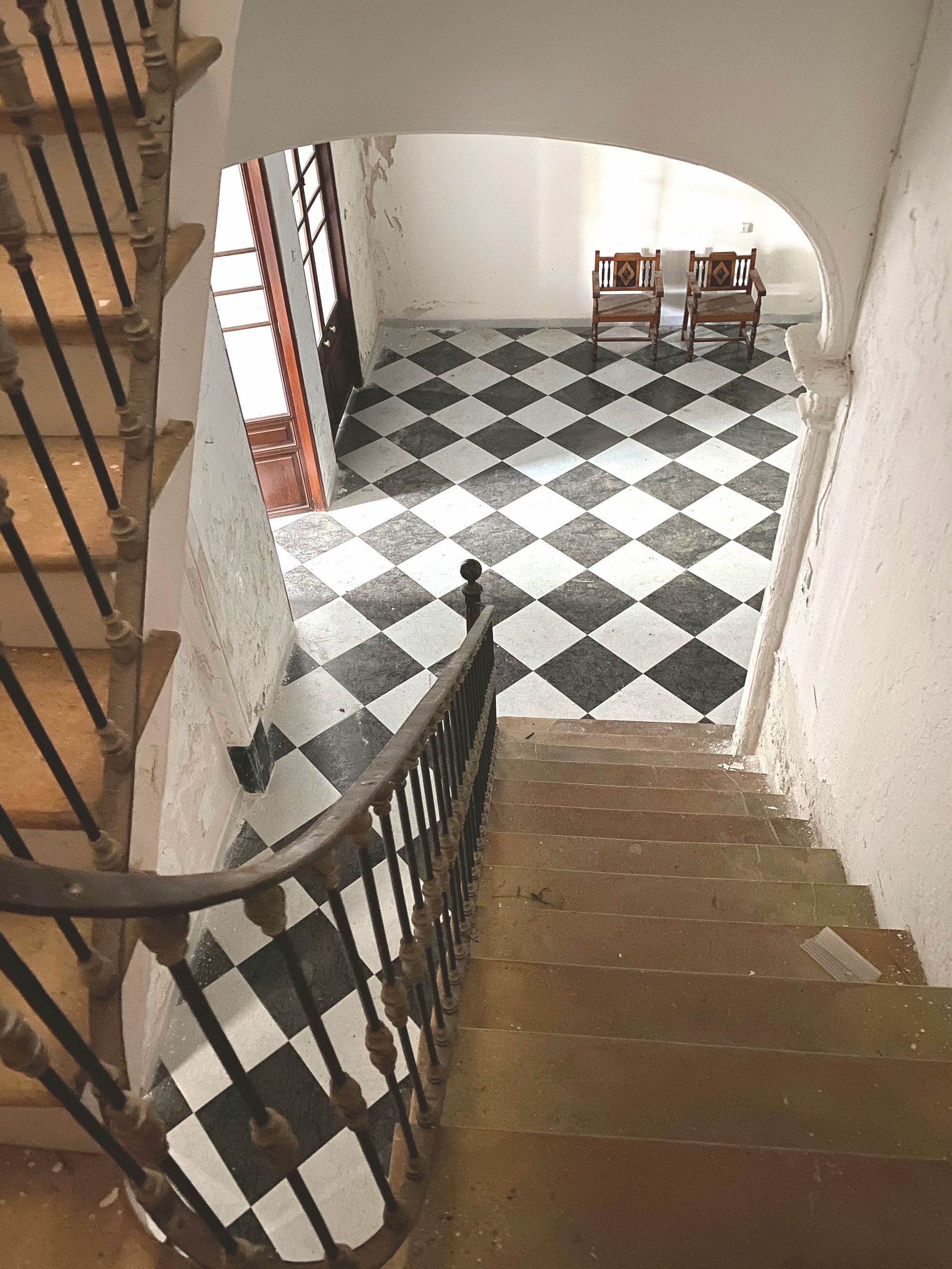 “I’ve always felt a responsibility to respect the history of the buildings I work on,” she says, pointing to traditional craftsmanship unique to older homes as a vital quality to maintain. “My role was to bring the house back to life without losing its character.” One of her most cherished vignettes is the central iron staircase that features a wooden handrail and ornate gilded detailing. “Also, the original hexagonal tiles from the first floor were salvaged and reinstalled on the second floor.”