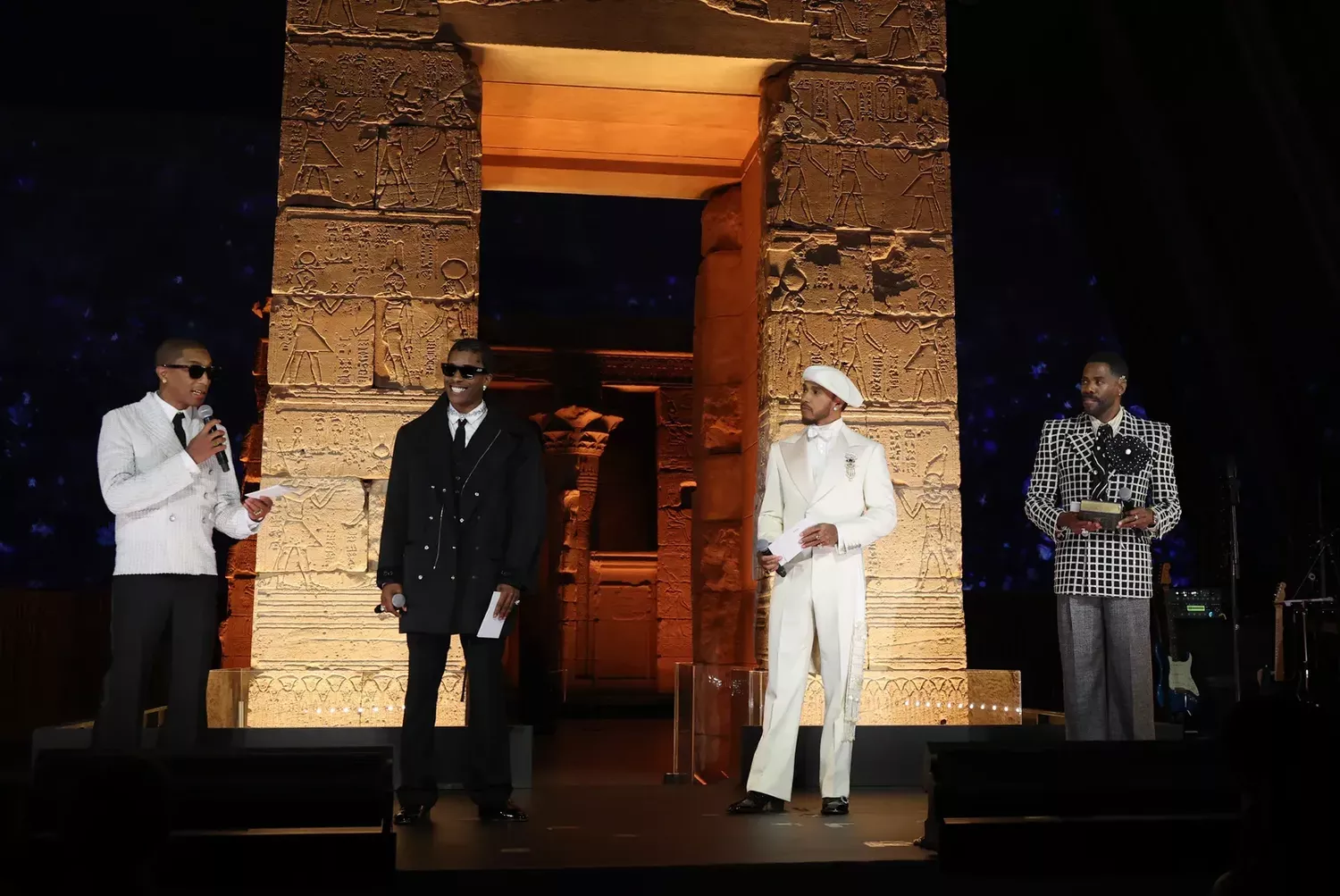 Pharrell Williams, A$AP Rocky, Lewis Hamilton and Colman Domingo at the 2025 Met Gala. Photo: Kevin Mazur/MG25/Getty Images