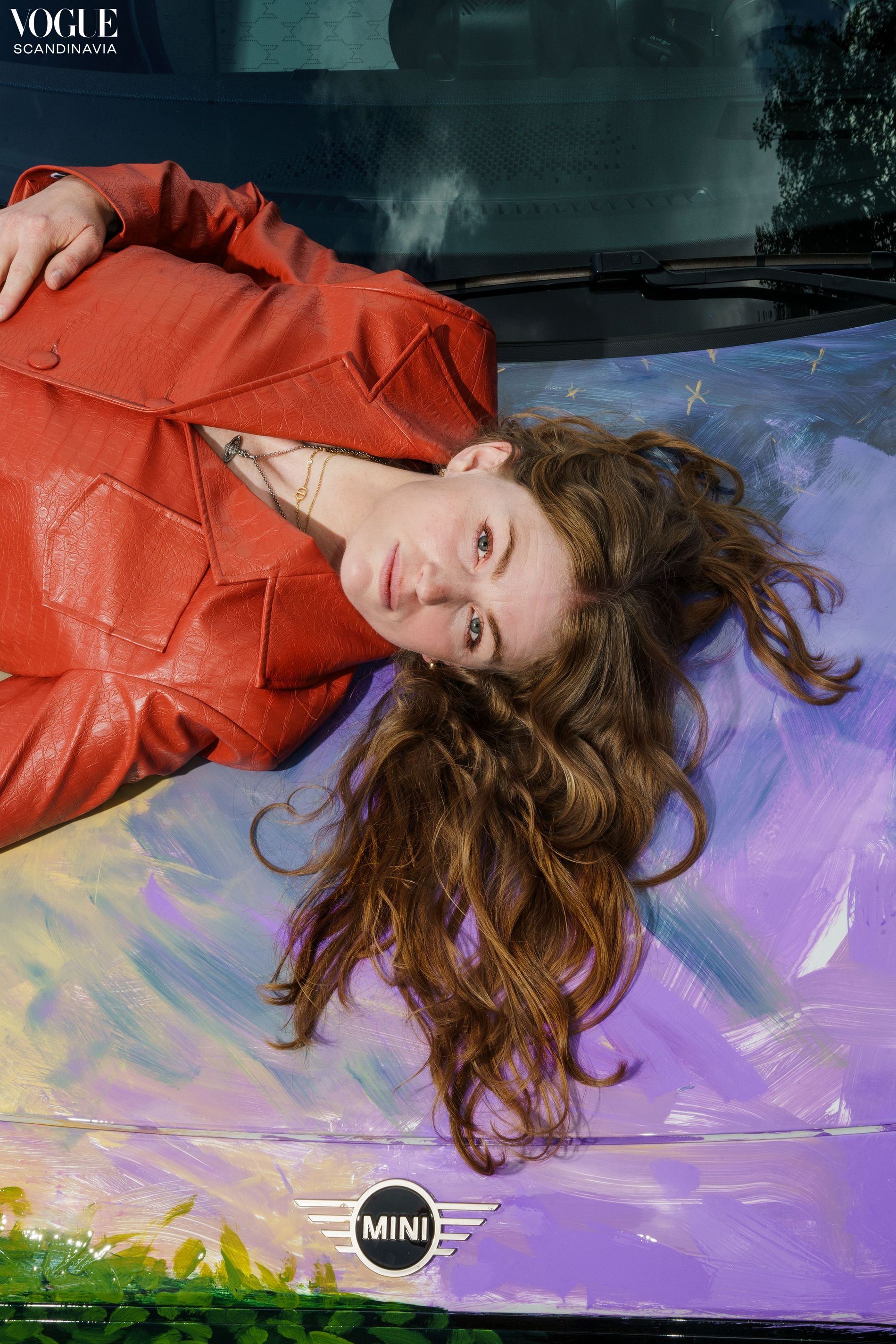 Though she is often the passenger, Madelen notes that it’s “so joyful to drive this car”. Faux leather blazer, Necklaces. Both Talent’s own. Photo: Kristian Bengtsson
