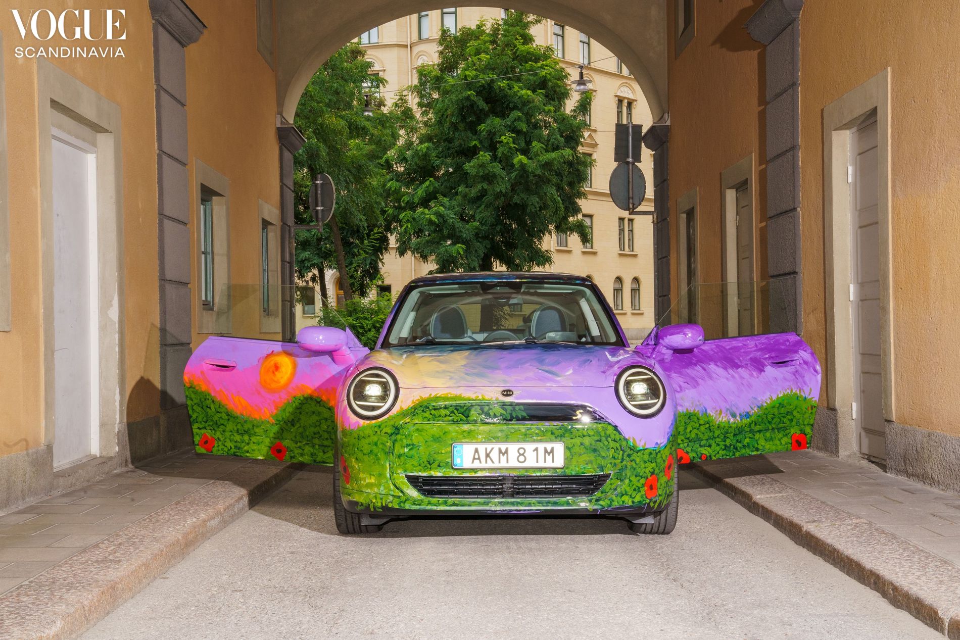 On a summer’s day in Båstad, over the course of six hours and in front of a mesmerised audience, a crisp white MINI Cooper was meticulously transformed into a vibrant work of art. Swedish artist siblings Madelen and Robert Möllard engaged in a sort of choreographed performance, first priming the vehicle in a muted yellow before adding grass and trees, fields of poppies and the twinkling stars of a night sky.