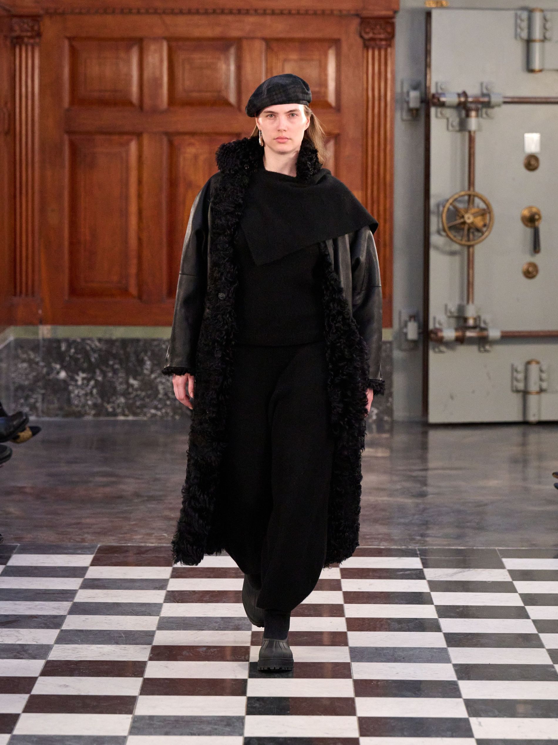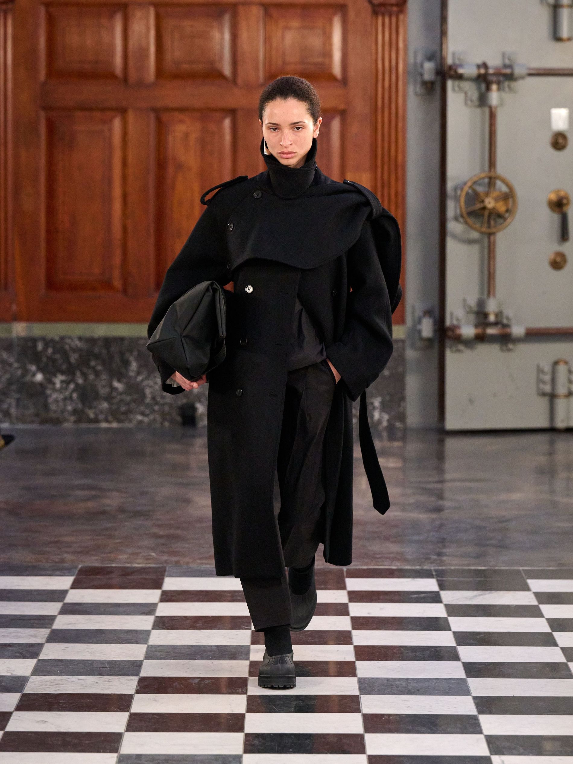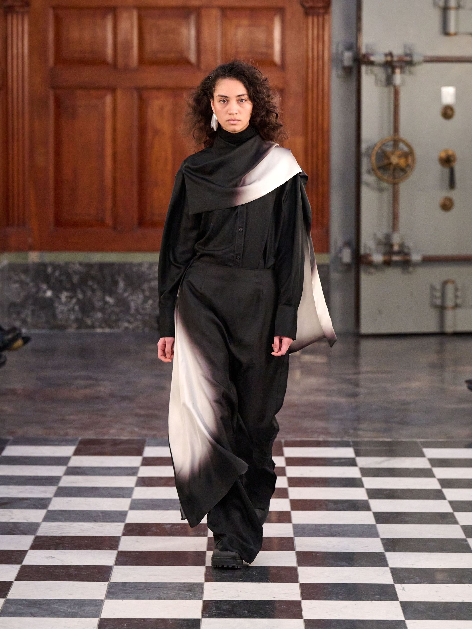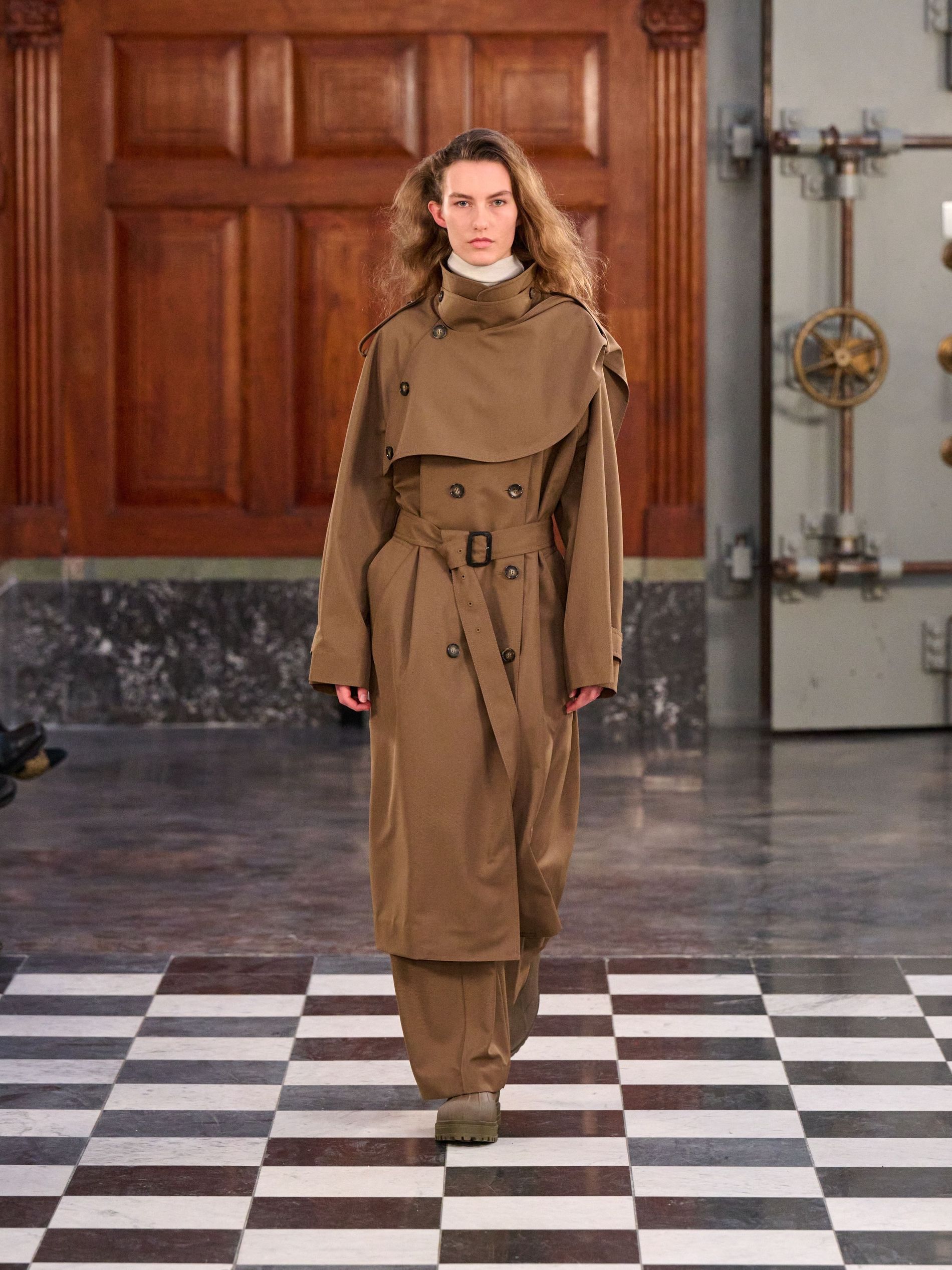 In a heady mix of refined neutrals, MKDT’s colour palette paid homage to Danish artist Oluf Host. Black and layered grey tones balanced out with earthy shades of lay, brown, hay and khaki, whilst seasonal accents of praline and deep fig added richness and contrast, balancing the visual rhythm of the collection.