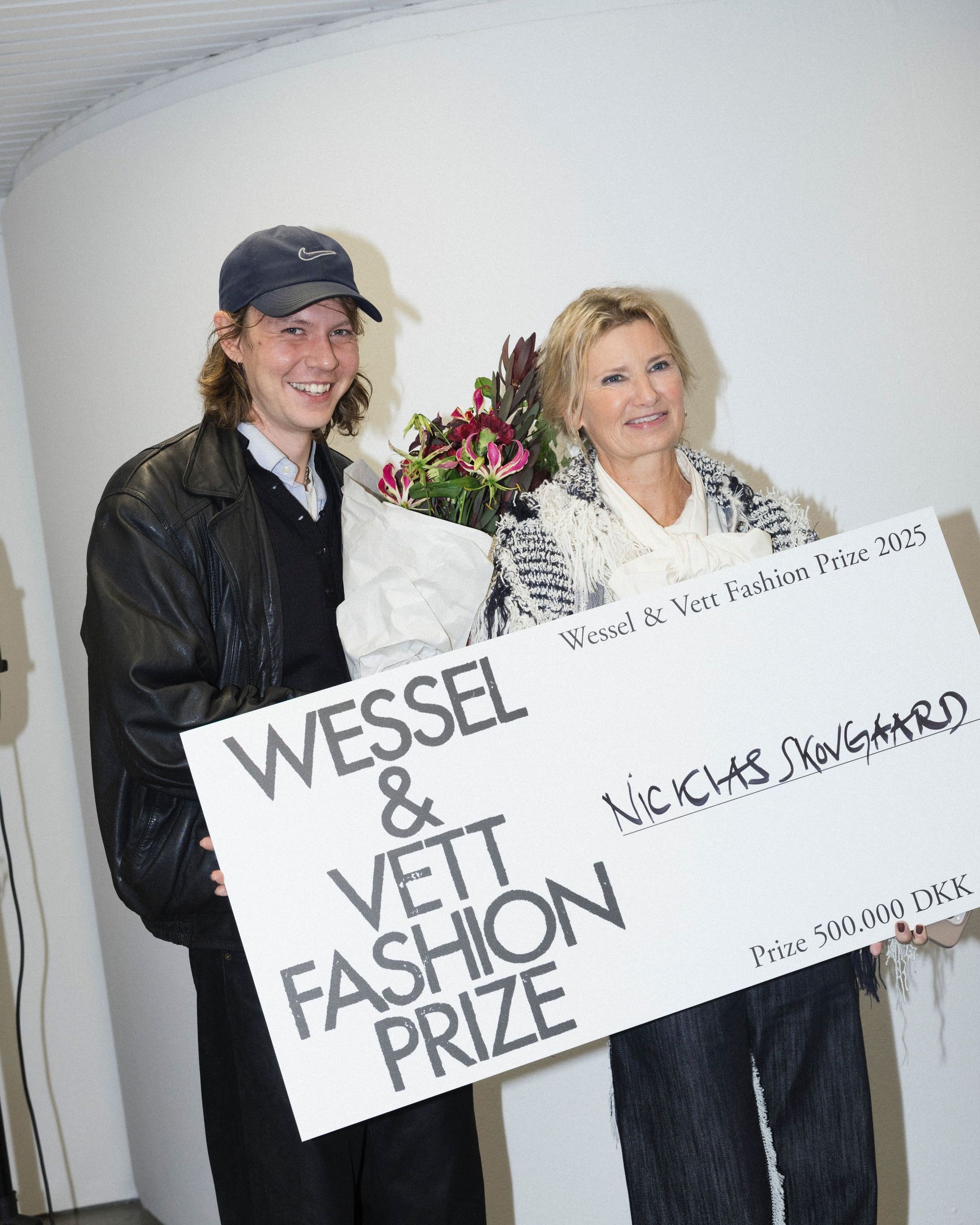 Last night in Copenhagen, Danish designer Nicklas Skovgaard could be found in a local bodega, beer in hand. Nearby, his oversized Wessel & Vett Fashion Prize cheque was propped against the wall, along with a towering bouquet of flowers and, surrounding him, a circle of friends and collaborators. It was a low-key, high-spirited end to a night that had seen Skovgaard claim the Nordic region’s most prestigious award for emerging fashion entrepreneurs — and one that cements him as one of Scandianvia's most compelling new fashion voices.