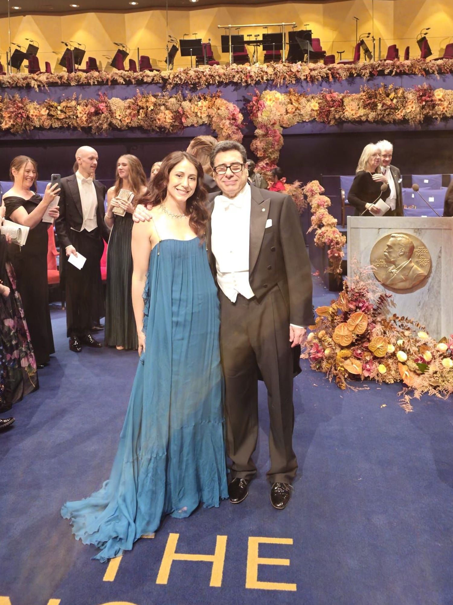 Mikhaela Aghion with her father, Nobel Laureate Philippe Aghion, who won the prize for his work in the field of Economic Sciences.