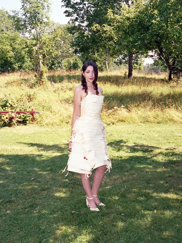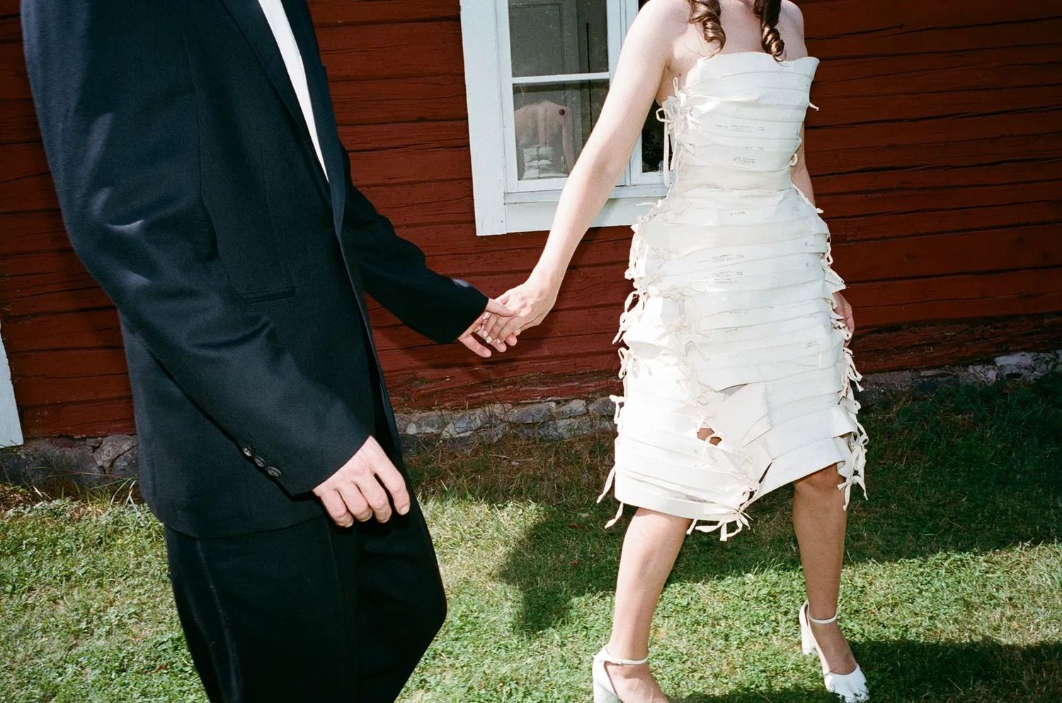 As Nuda regularly stages exhibitions and happenings, Hagdahl took the wedding planning in her stride. “I always dreamed of having a big party for my friends, and because I lived in different places and Kornél has so many friends all over the world, the dream was to have everybody meet,” she says. “That was the big appeal for me, to have all these worlds come together.” This comingling took place at the bride’s parents’ home in Opptuna, about an hour away from Stockholm.