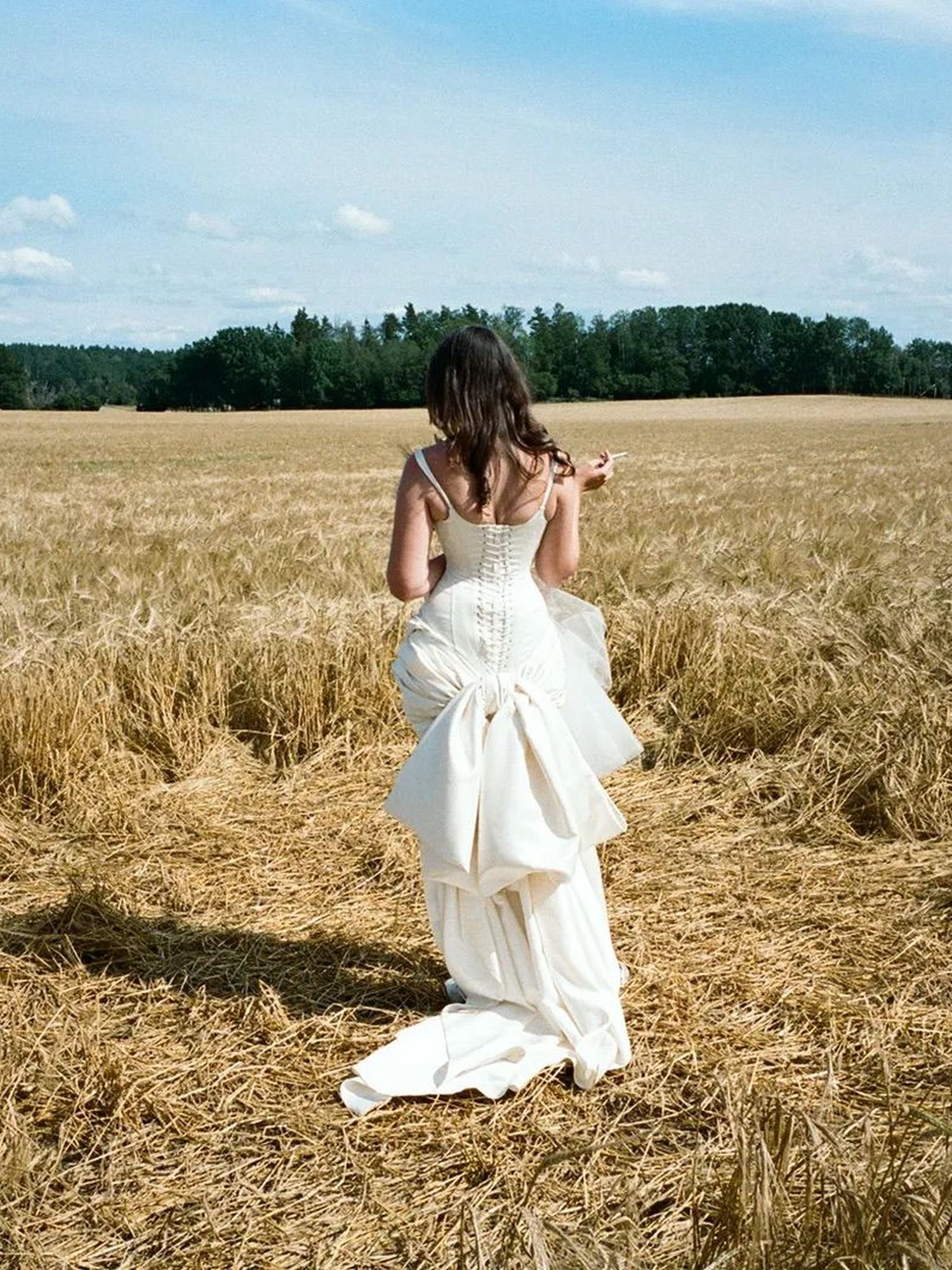 In the course of speaking about her wedding, Nora Arrhenius Hagdahl describes herself as “very much a fashion girl,” “a flirty girl,” “a craft girl,” and “a waist girl.” So, to accommodate all of these different aspects of herself, the bride donned three looks over the course of the celebration at which drew creatives from Berlin, London, and Stockholm.