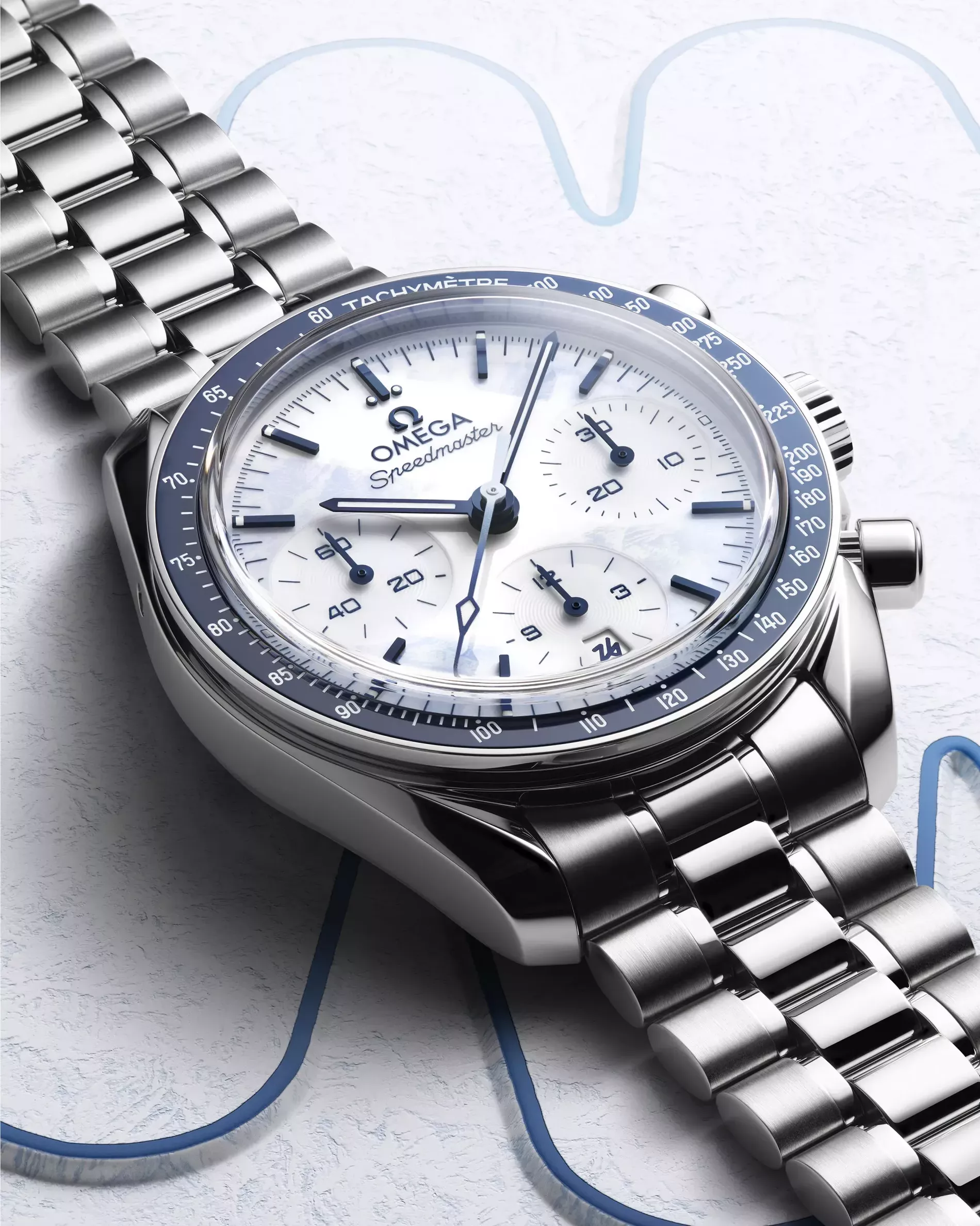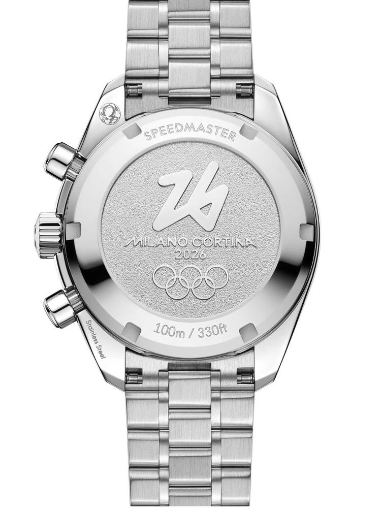 Aside from capturing Olympic timings with extraordinary to-the-second accuracy, what makes this specific Speedmaster such a masterful product of watch manufacturing is the attention to detail involved. From the navy thematic typography inscribed across the date display at 6 o’clock and the subtle icy-blue gradient surfacing, to the patented comfort release adjustment system, immaculately varnished subdials and the self-winding Co-Axial Calibre 3330, which offers 52 hours worth of power reserve. It's both an exclusive engineering feat and the optimal keepsake for sporting enthusiasts, the timepiece is even branded with a Milano Cortina 2026 medallion that you can proudly wear, cherish and choose to remember the momentous mountain-side occasion by.