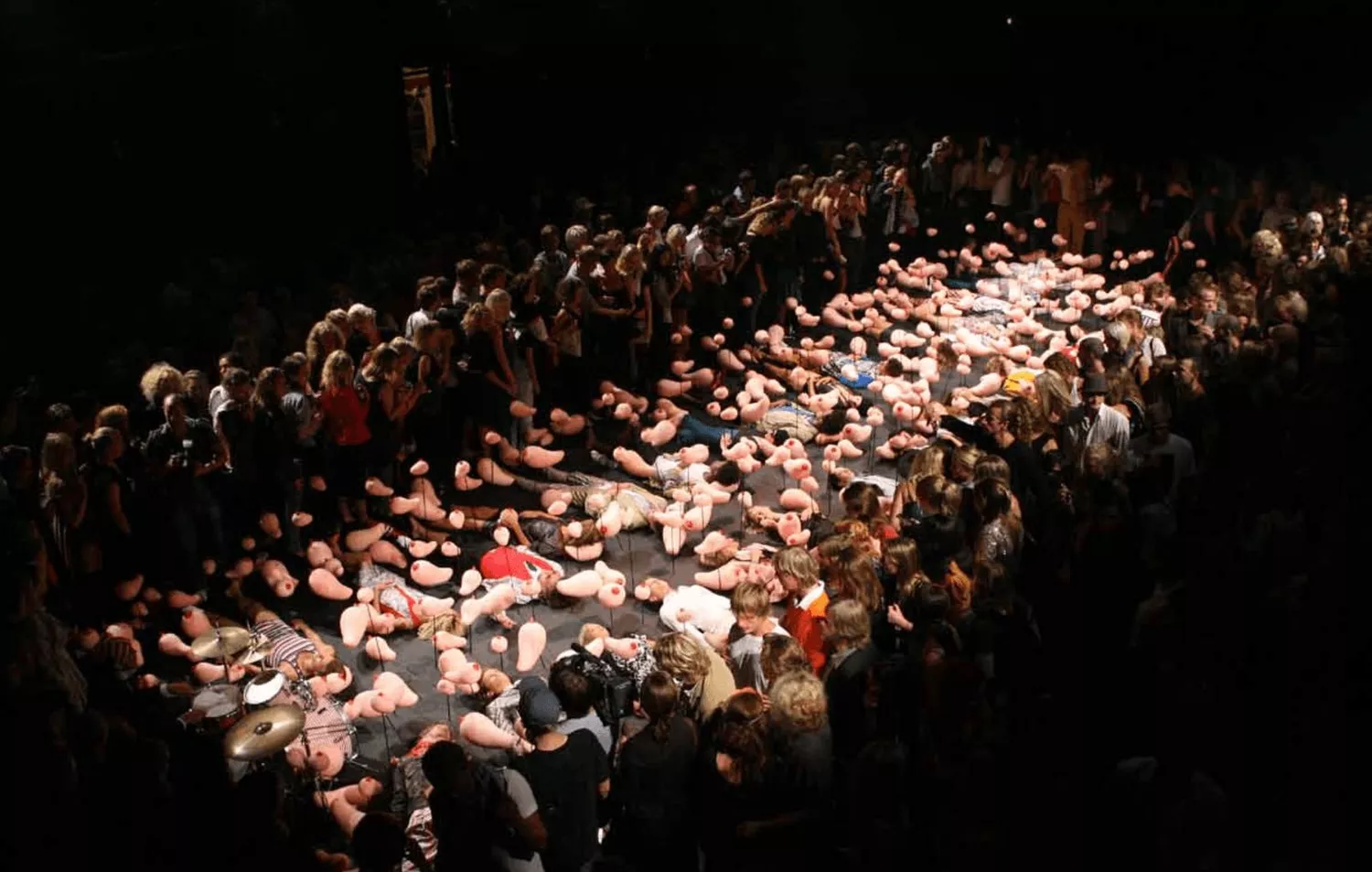 I started doing shows in Copenhagen before the fashion week existed, but it was more like a big party. I would do these dual shows, where first I would do Paris, and then I’d do Copenhagen. I think for Copenhagen, I stood out a lot – everyone else was on the grey, beige, black team. I realised I could do something more theatrical or performative. One of the shows that I did in 2006 was public, so you could pay £2 or a pack of cigarettes to get in.