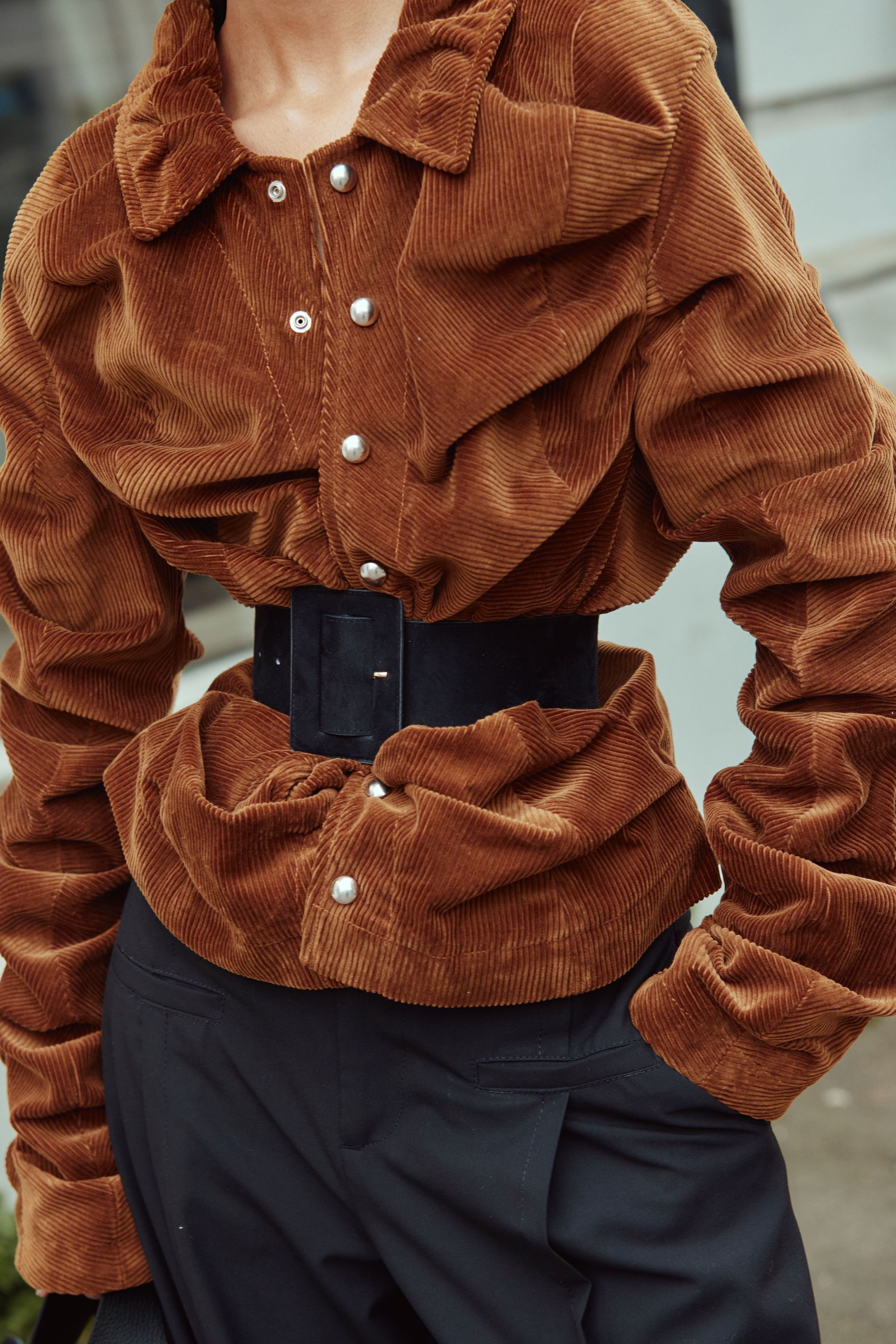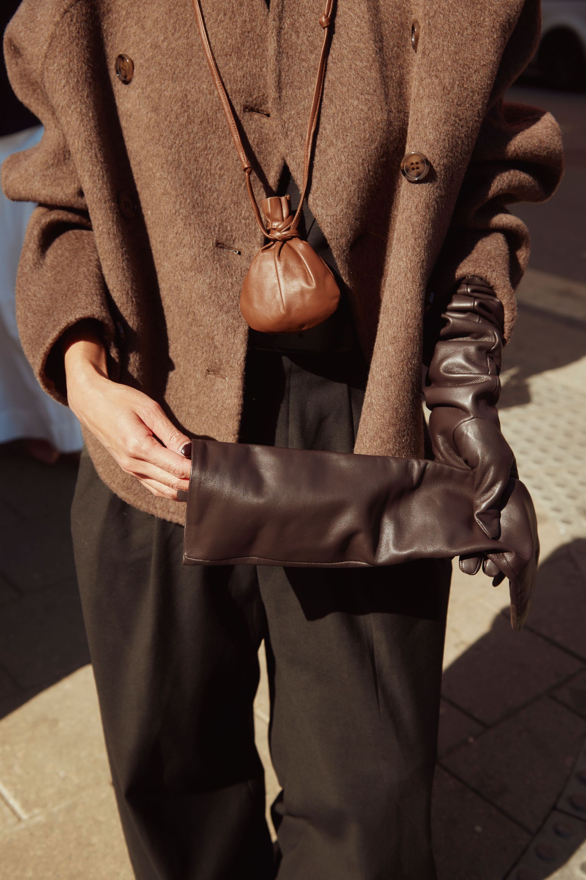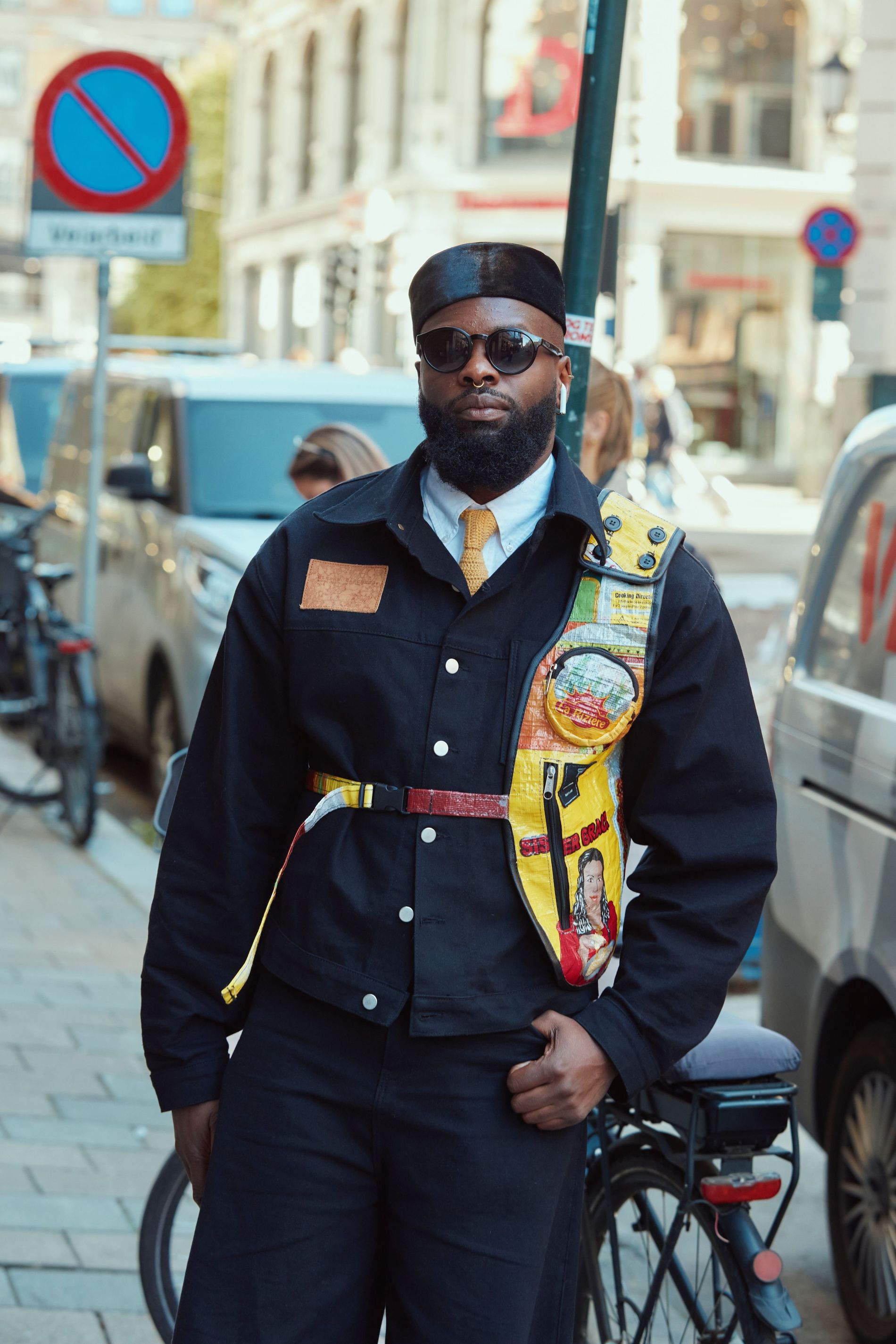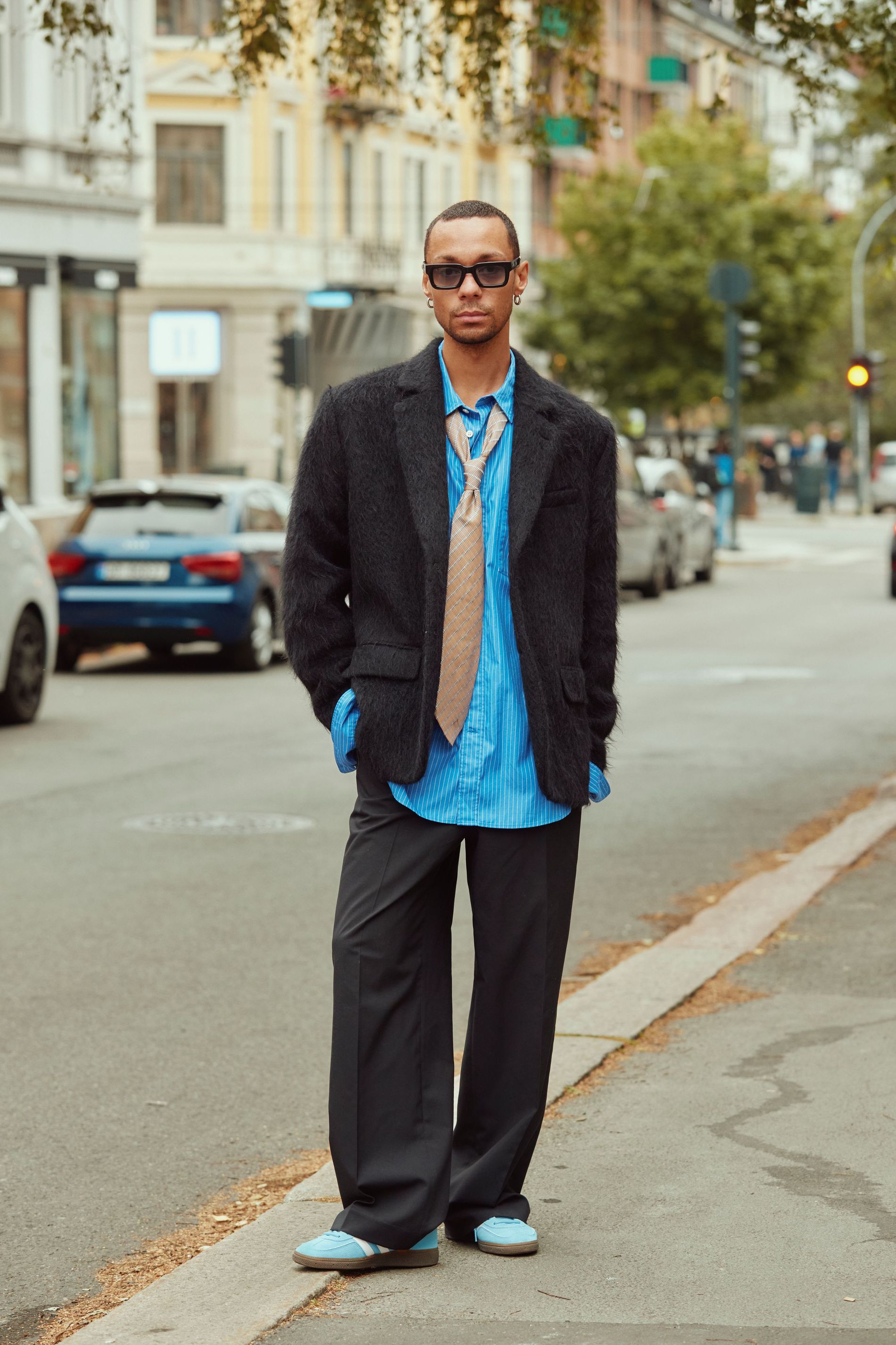 Autumn has arrived early on the streets: suede coats and tan brown hues set the tone, a warm counterpoint to Oslo’s unpredictable mix of sun and rain. Amongst the show-goers, there’s a confidence in mixing codes: denim with opera gloves, ruffles with biker jackets, punk-spiked hair set against clean Scandinavian minimalism.
