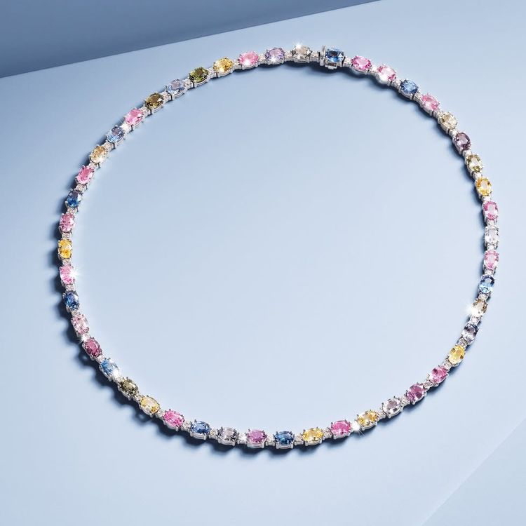 Her star of the show? Sapphires. Available in every colour aside from red, Bonnier remarks that the September birthstone is "one of the most durable and adaptable precious gemstones." Sure enough, the sapphire's extraordinary beauty and versatility is evident below, in Piaget's Possession bracelet and Bucherer's exquisite Pastello necklace. Both hand-picked by Bonnier, the two 18k gold purchases are not only worthwhile, enviable investments but are also perennially pleasing to the eye.