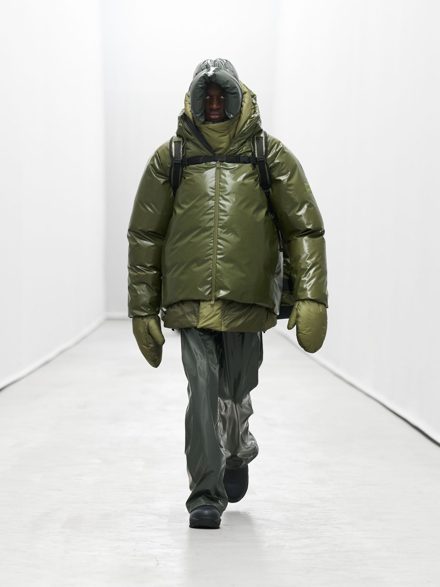 “We were interested in reinventing icons,” adds Johanne Dindler, Rains' head of design. “Forver icons meet future icons. The show itself evolves – starting with more muted pieces and building up to a louder finale, ready for the most extreme weather.”