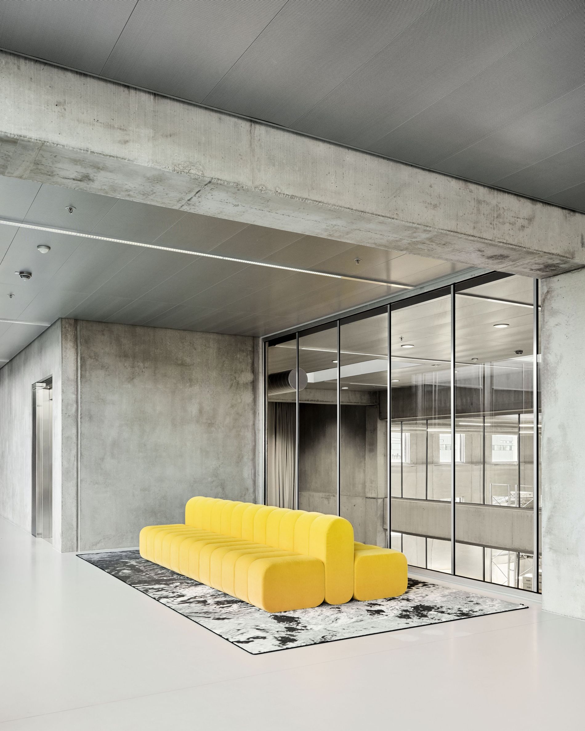 A mass of glass, steel, concrete and pine, Rains' four-storey headquarters seamlessly blends elements of brutalist architecture with the wildness of the Danish landscape, reflecting the brand’s connection to the outdoors.