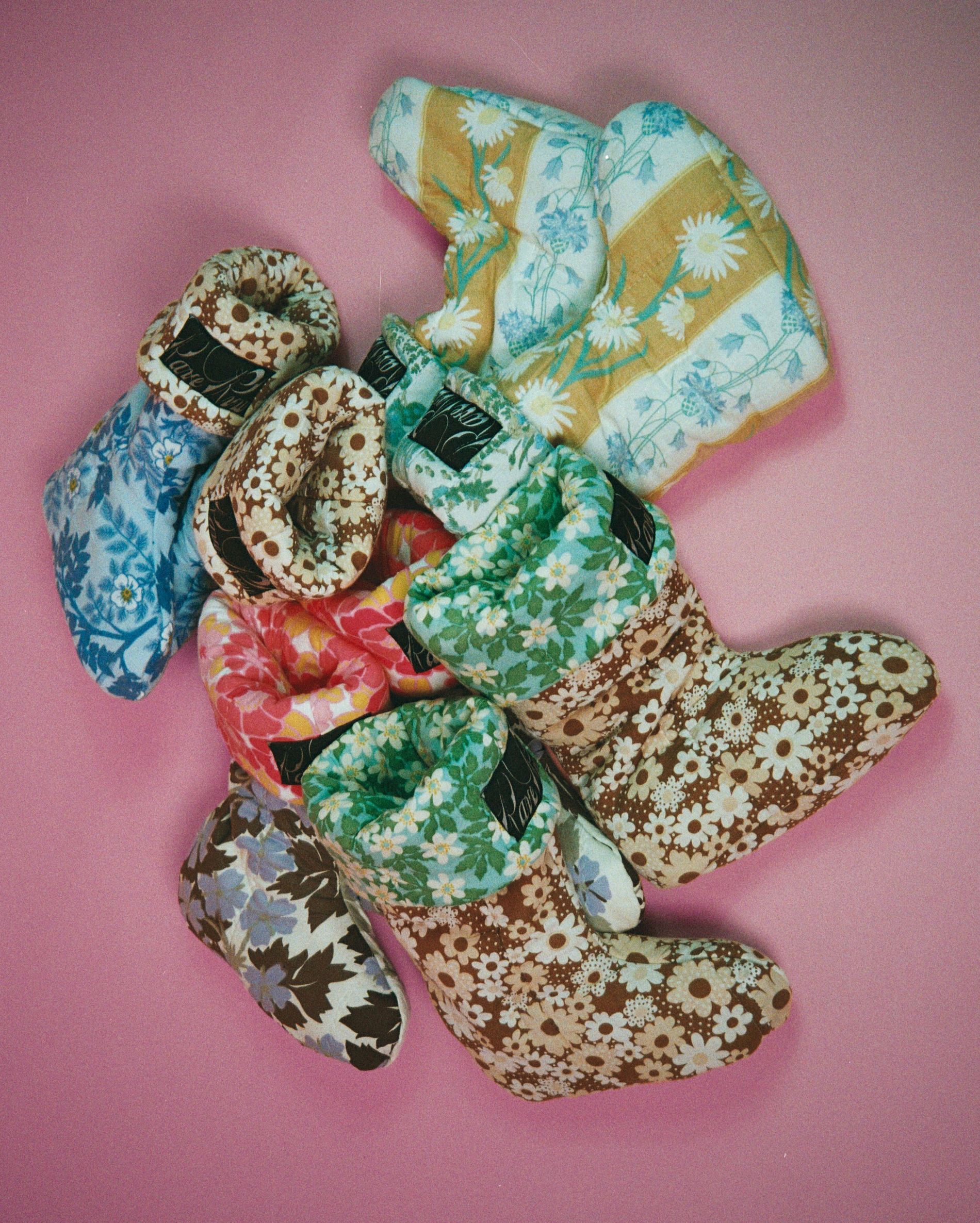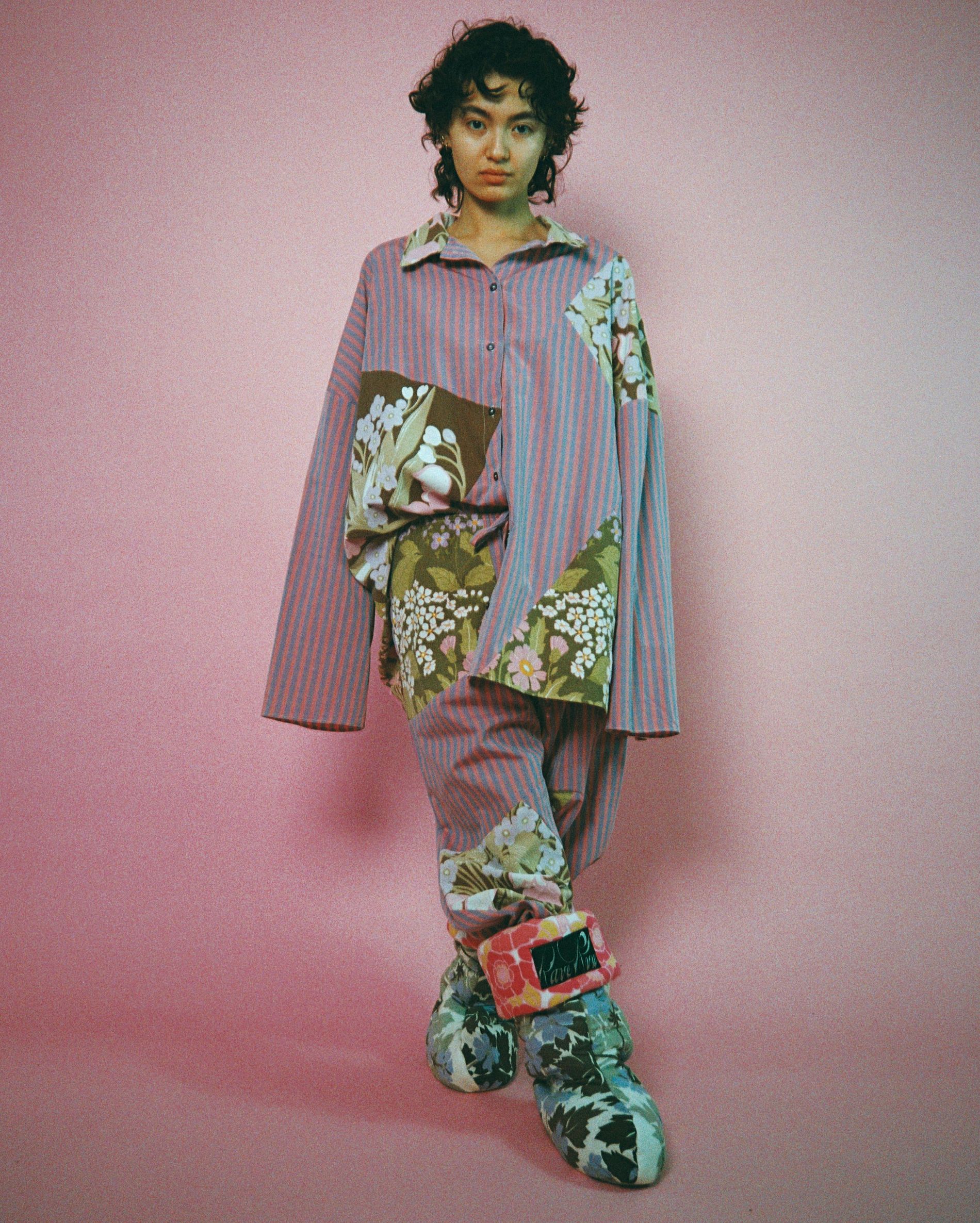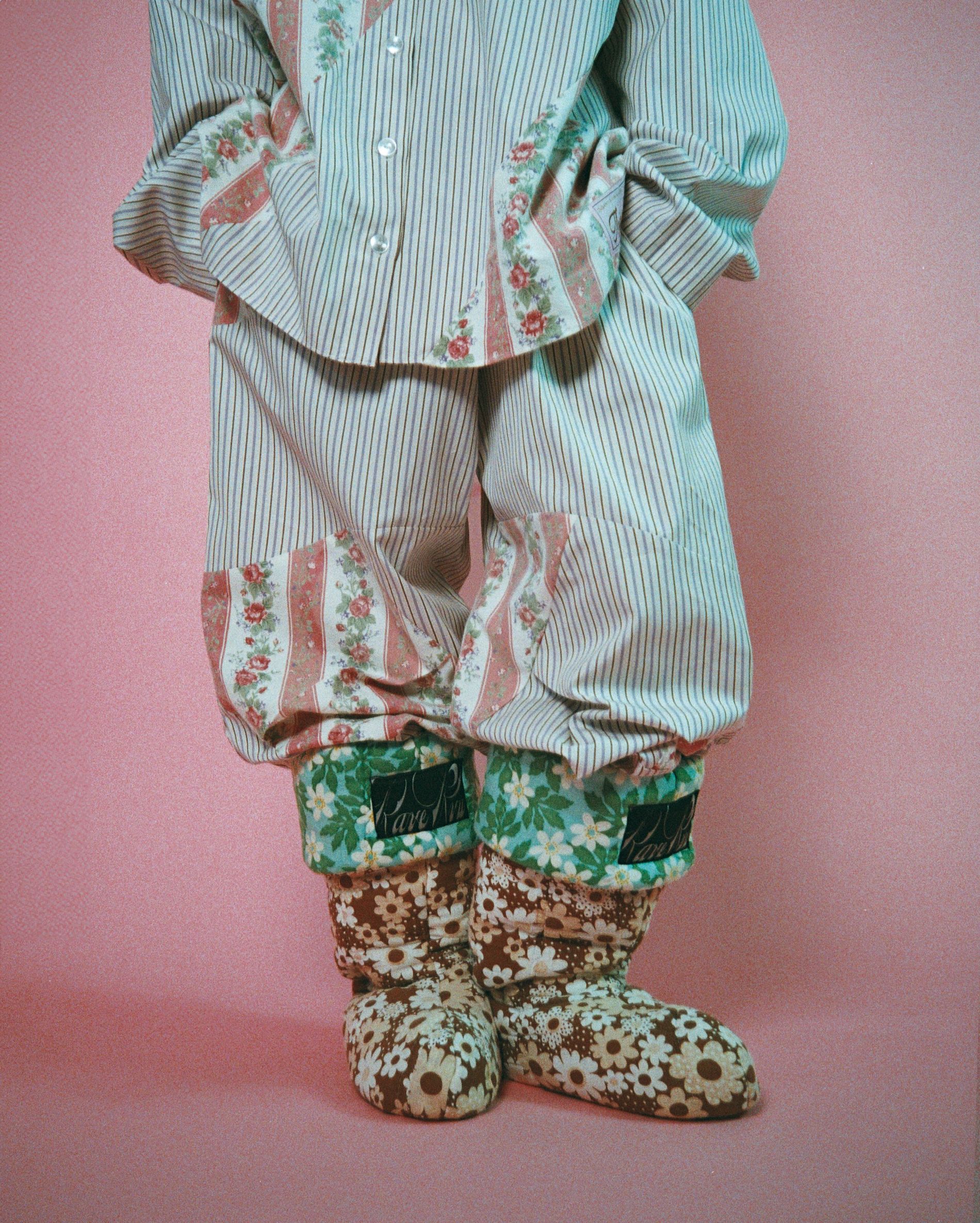 Rave Review’s entire premise is transforming textiles originally intended for the home – bedding, tablecloths, drapes – into garments intended to be worn outside the house. But the Swedish brand’s latest capsule brings these home textiles, well, back home. Consisting of pyjamas and slippers, robes and pillows all rendered in Rave Review’s signature print-clashing patchwork, the homewares and home-wears collection arrives this Friday, just in time for the holidays.