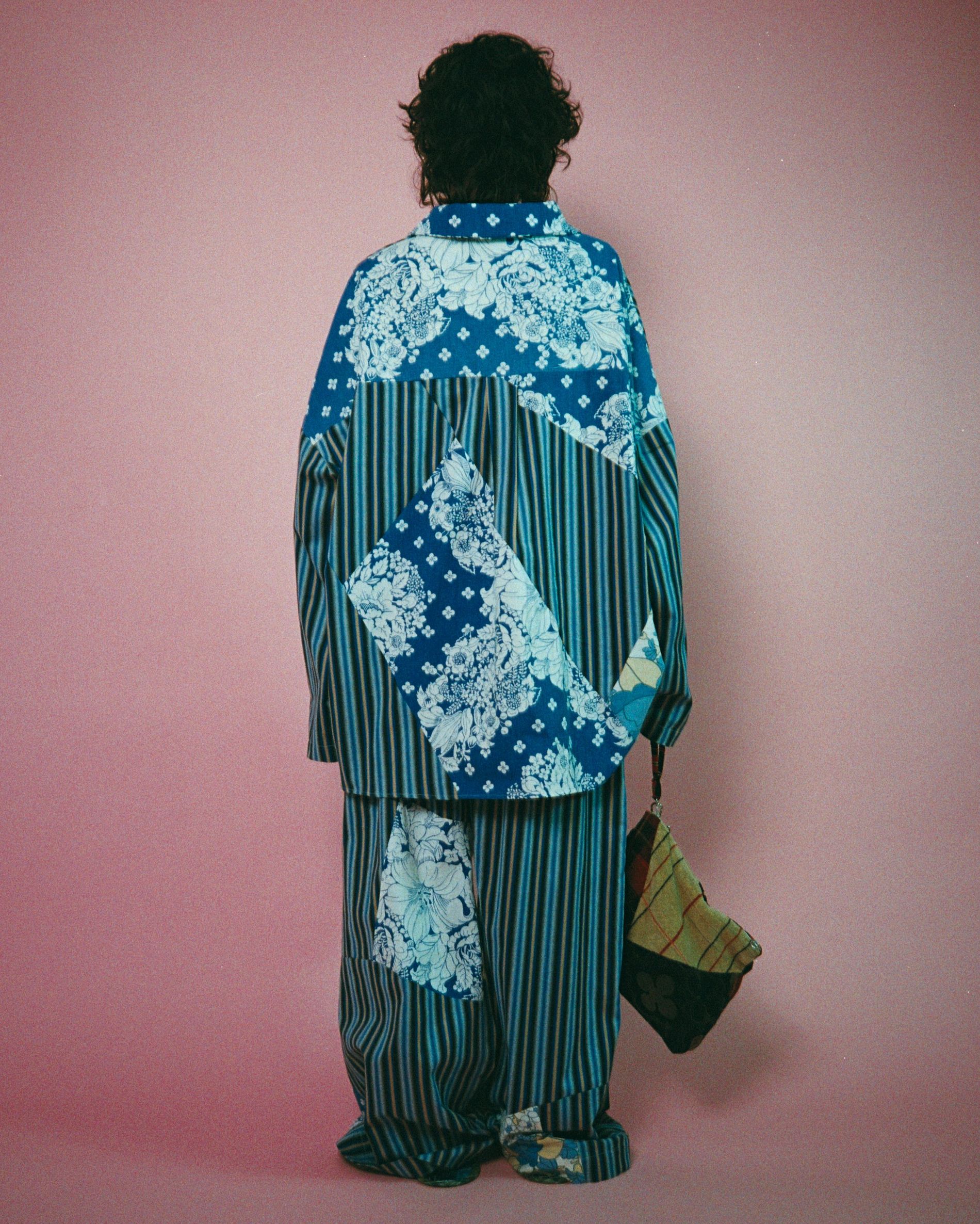The resulting capsule consists of one-size-fits-all button-down sleep shirts (which, by the way, would look quite at home on the streets with a pair of jeans) and matching relaxed pyjama pants, puffy slipper socks fashioned from duvets and cozy robes made from vintage towels. “We made a robe like this in the collection,” notes Schück. “Then they were made to be worn outside – maybe by a crazy person.” Rounding out the offering are toiletry bags and patchwork throw pillows, ideal to Rave Review-ify any space. Who knew staying in could look so good.