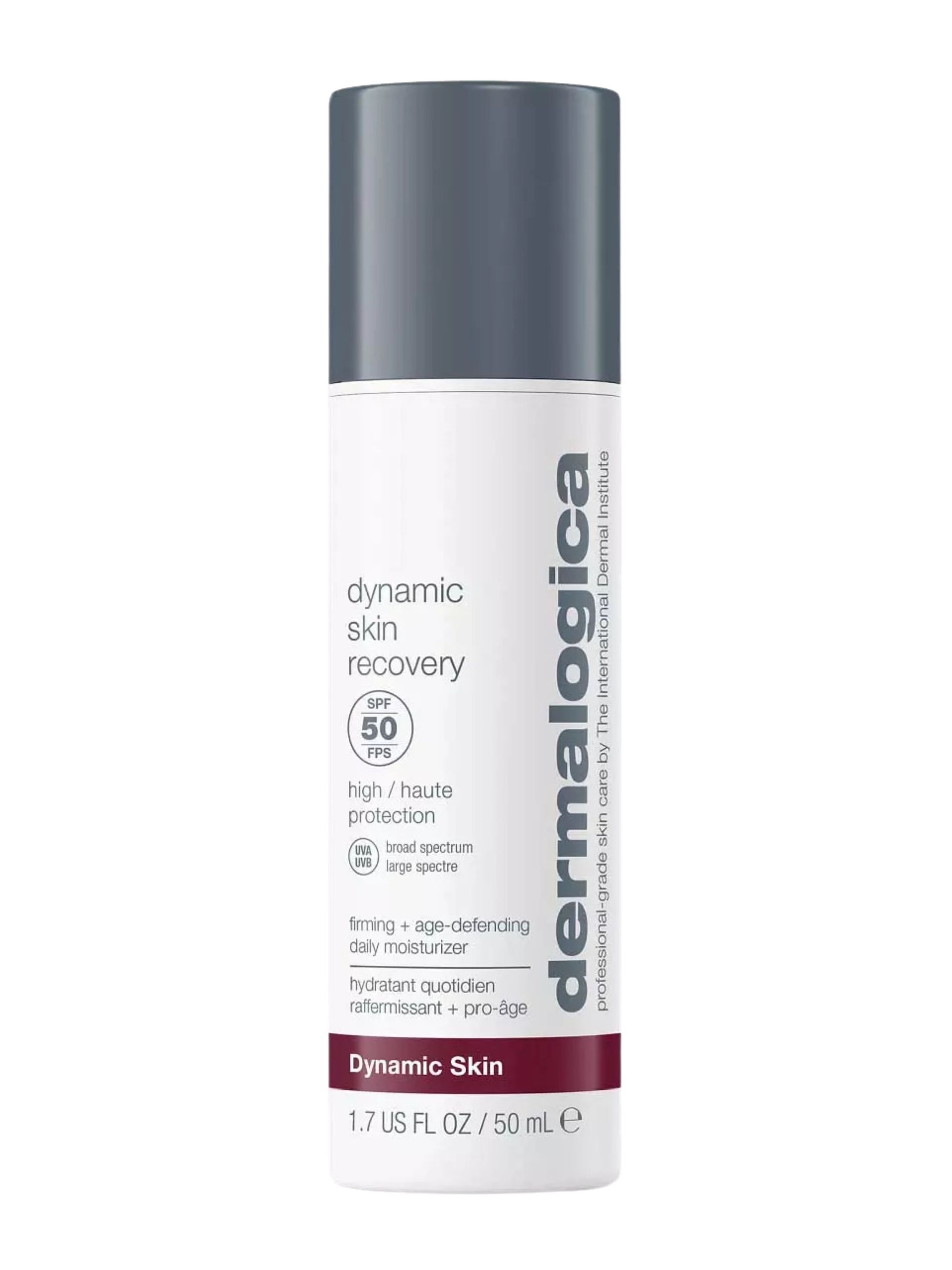 I love the Dermalogica Dynamic Skin Recovery SPF 50. It hydrates, protects from UV, helps prevent premature aging, and blends beautifully into the skin.