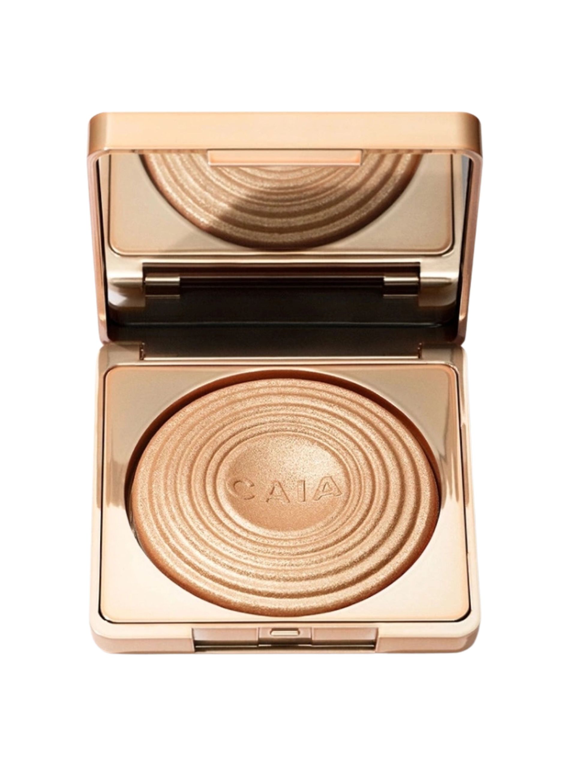 To finish, I add extra glow to my cheekbones and the bridge of my nose using either the Caia Glow Highlighter in Portofino or the YSL All Hours Hyper Luminiser.