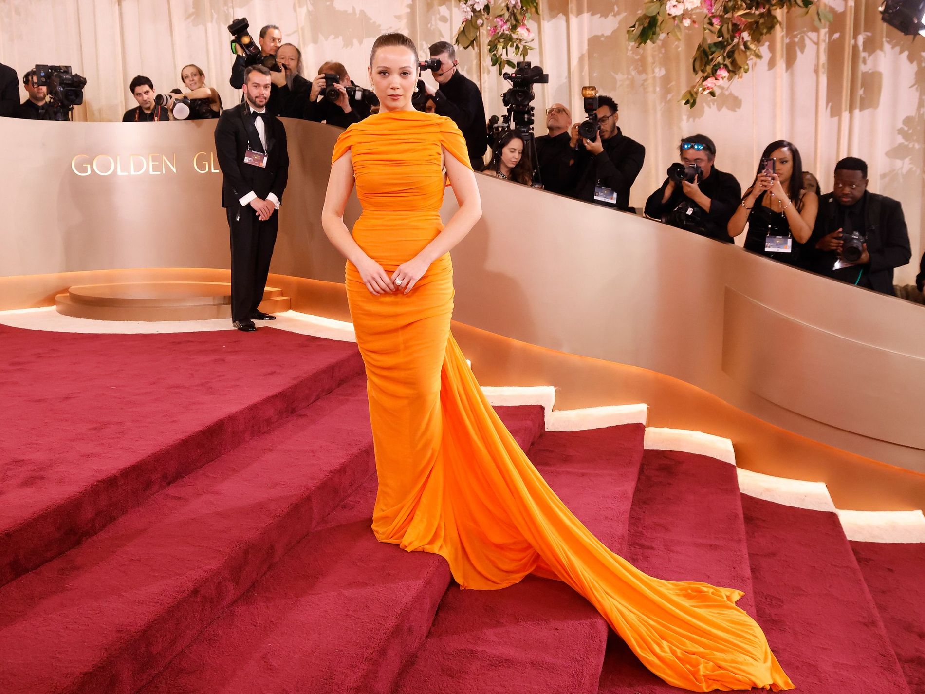 Another Vogue Scandinavia cover alum who stunned on the 2026 Golden Globes red carpet was Icelandic singer Laufey. Like Ibsdotter Lilleaas, Laufey opted for an unusual hue and the gamble really paid off. Her vibrant orange gown, which featured a simple, waist-accentuating silhouette and subtle draping, was courtesy of colour master Pierpaolo Piccioli’s spring/summer 2026 Balenciaga debut. She’s not the first Scandi to wear orange for a major awards show moment; Danish actor Vic Carmen Sonne dabbled in the hue for last year’s Oscars.