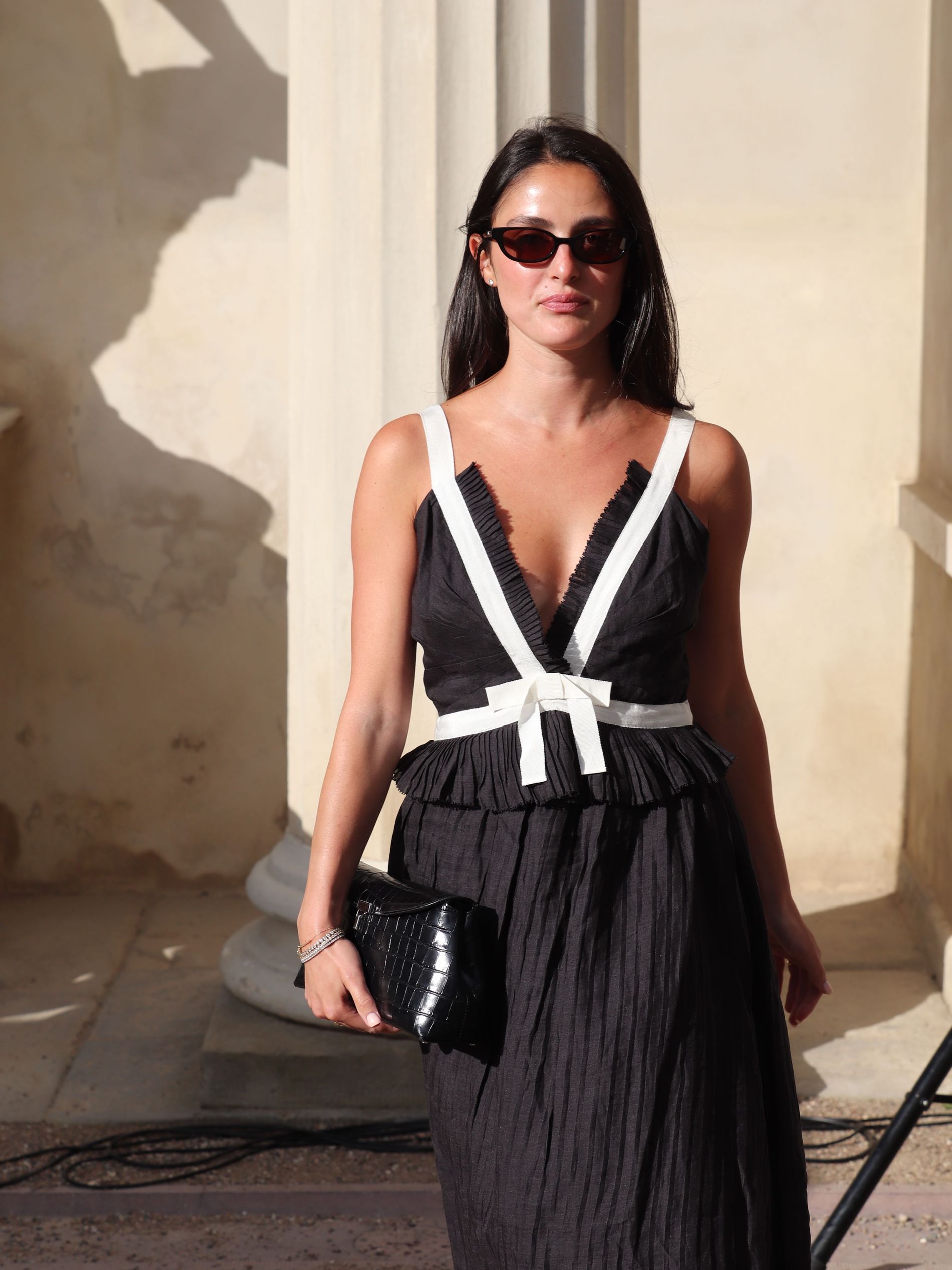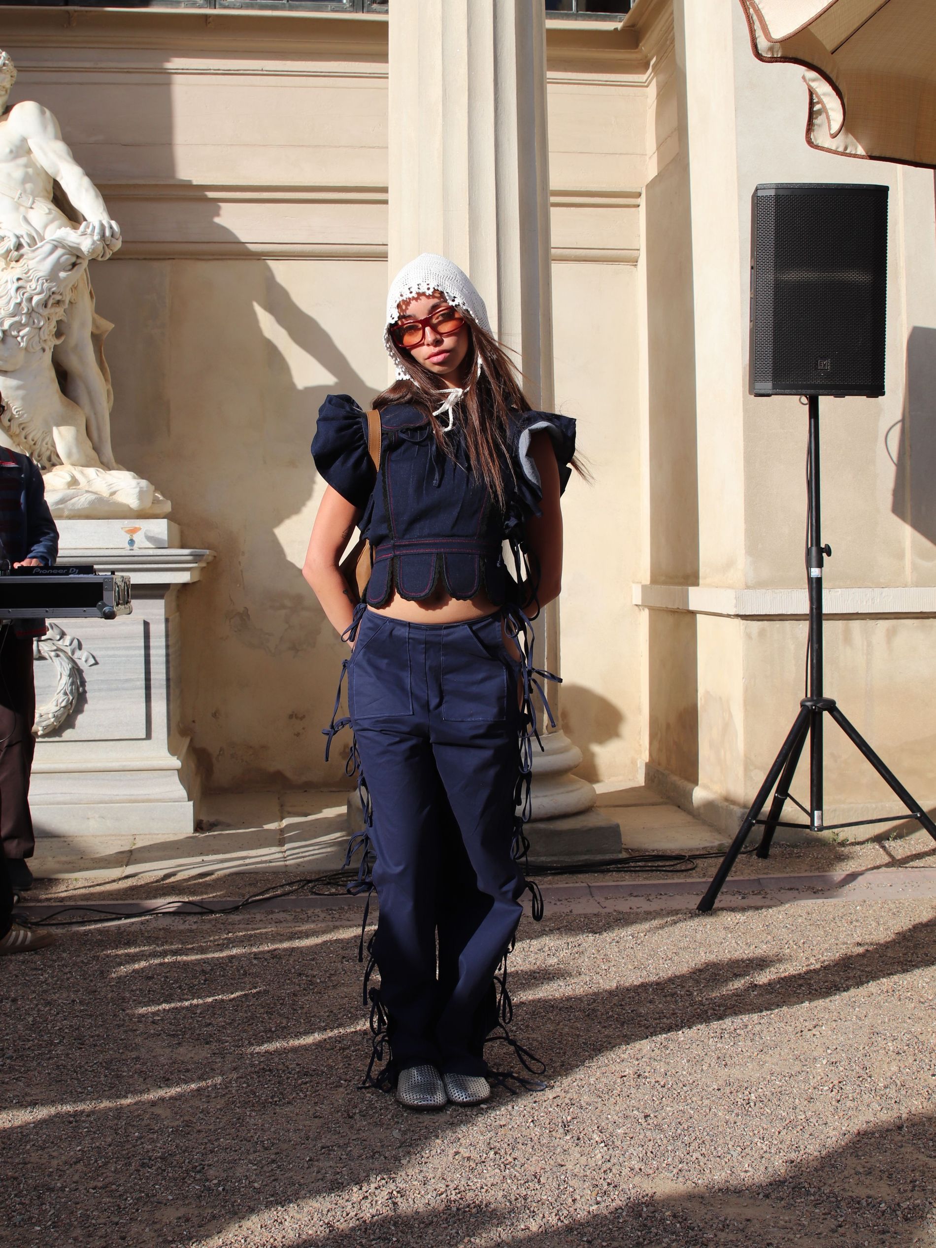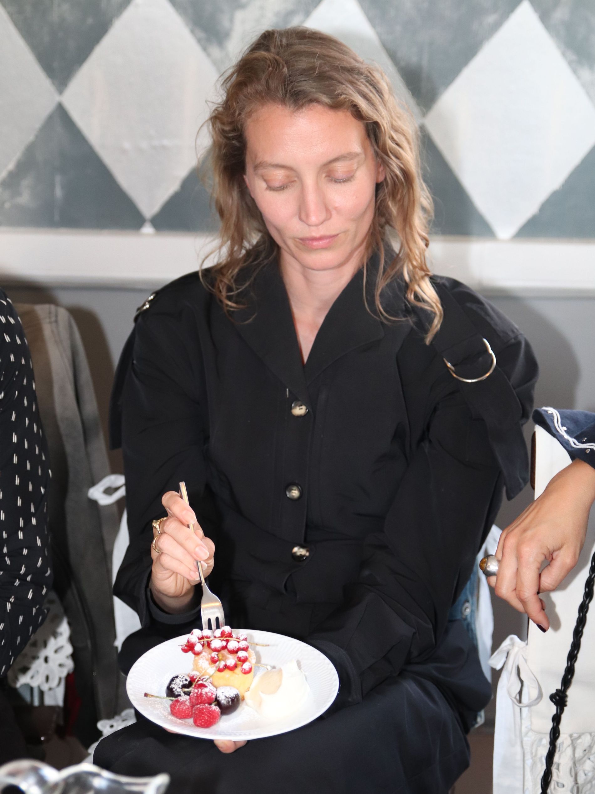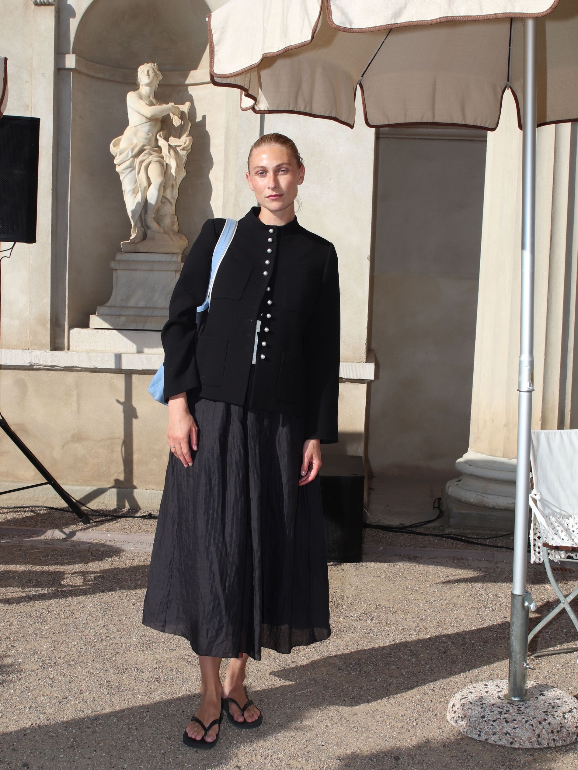 The dinner setting, once again designed by Mentze and Ottenstein, mirrored the thoughtful simplicity of the pop-up. A single, raw timber table stretched across the lawn, dressed with soft linens and wildflowers. The sun lingered low in the sky as guests passed plates of Nordic-inspired fare, glasses clinked gently, and conversations unfolded naturally. In a week of fashion-week frenzy, Sea’s dinner unfolded quietly, and will likely be remembered longest.