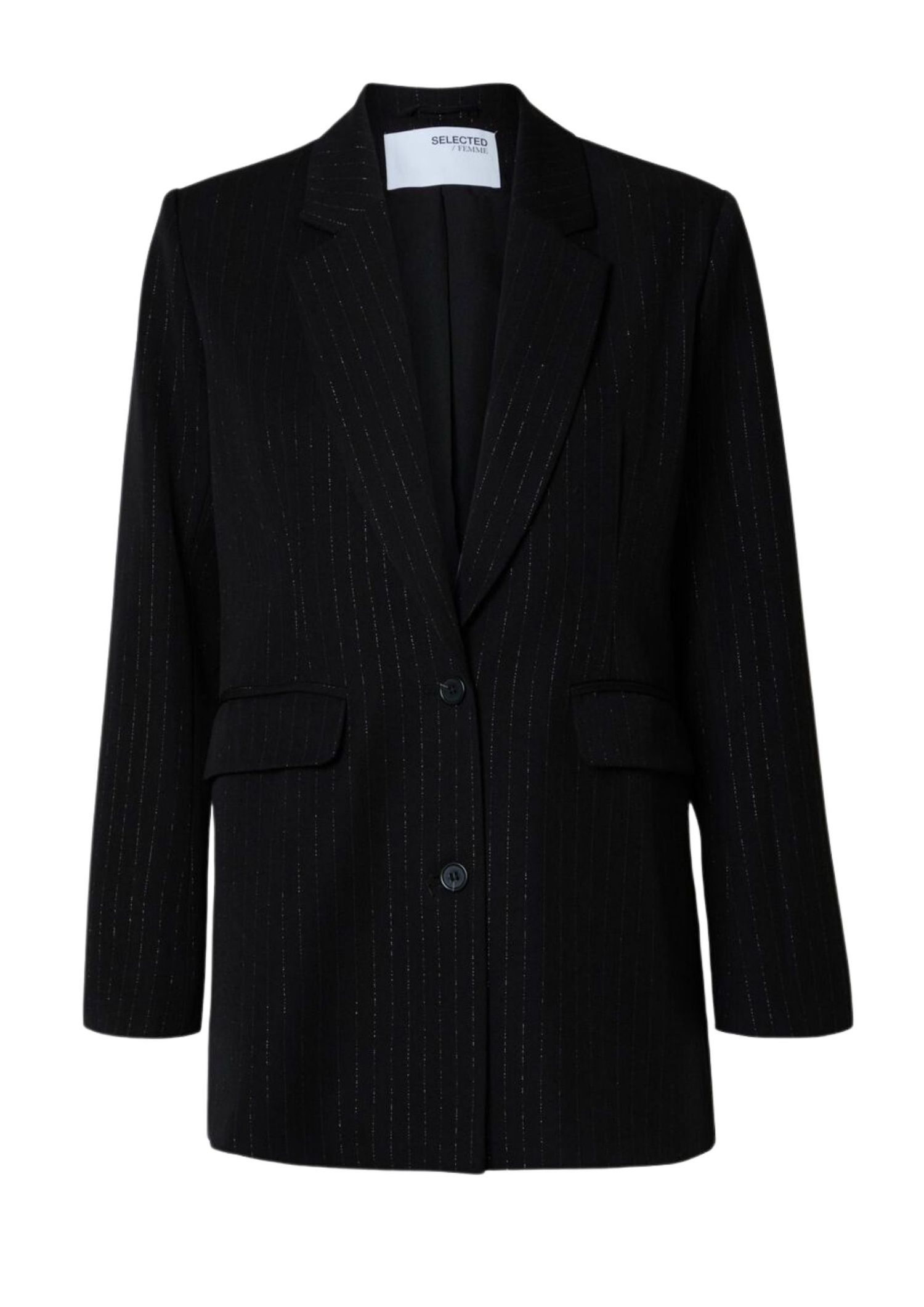 The suit in question, impeccably fitted and made from premium fabrications, has metamorphic qualities. It transforms throughout the day to fit any and every occasion. When office-bound, we imagine the cross-over trousers styled with SELECTED's updated white shirt, with its matching pussy-bow shawl tied into a windsor knot – a fuzzy knit casually slung across the shoulders. For evening, a full suit embellished with glittering appliques carries us through the night.